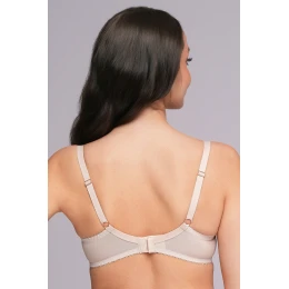 Biustonosz Ava 2256 Asielle z usztywnianymi miseczkami na fiszbinach zapewnia pewne podtrzymanie i gładką sylwetkę. Górę miseczek zdobi półprzejrzysta koronka o roślinnym rysunku, dół pozostaje gładki. Ramiączka są regulowane i nieodpinane, tył zapinany na haftki. Elastyczne materiały poprawiają komfort w codziennym noszeniu. To funkcjonalny model o kobiecym wykończeniu. Skład: poliamid 82%, elastan 11%, poliuretan 5%, bawełna 2%.