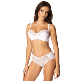 Biustonosz marki Róża. Model Ljufu. Posiada druty, które podpierają piersi odpowiednio je kształtując. Produkt posiada regulowane ramiączka bez możliwości ich odpięcia. Haczyki do ramiączek metalowe. Biustonosz zapinany na haftki. Miejsce zapięcia: tył. Produkt został wykonany z 85% poliamid, 10% elastan, 5% bawełna. Produkt damski.
