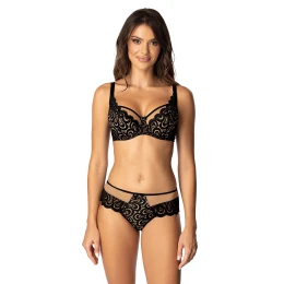 Biustonosz marki Róża. Model Saraja. Posiada druty, które podpierają piersi odpowiednio je kształtując. Produkt posiada regulowane ramiączka bez możliwości ich odpięcia. Haczyki do ramiączek metalowe. Biustonosz zapinany na haftki. Miejsce zapięcia: tył. Produkt został wykonany z 85% poliamid, 10% elastan, 5% bawełna. Produkt damski.