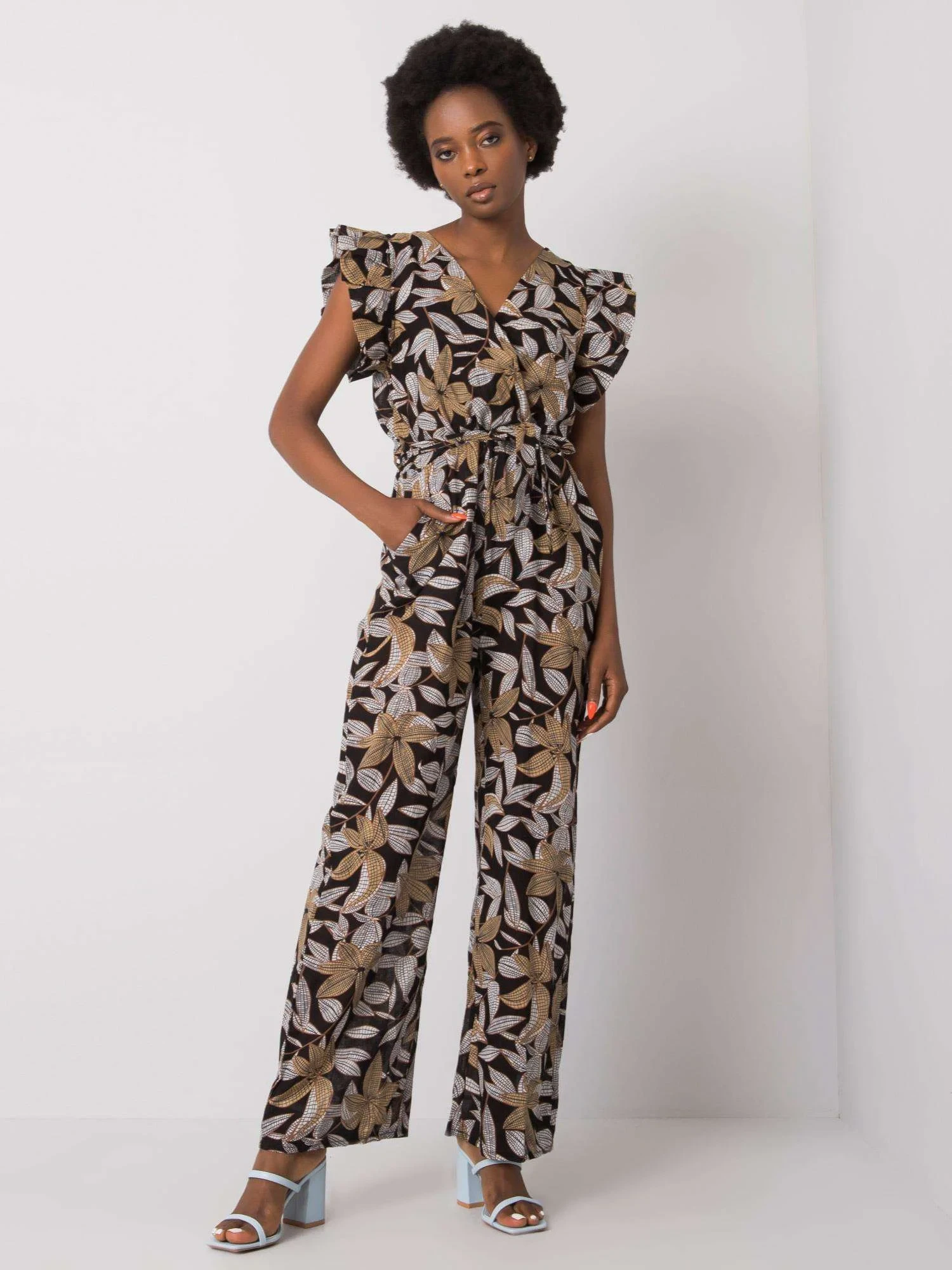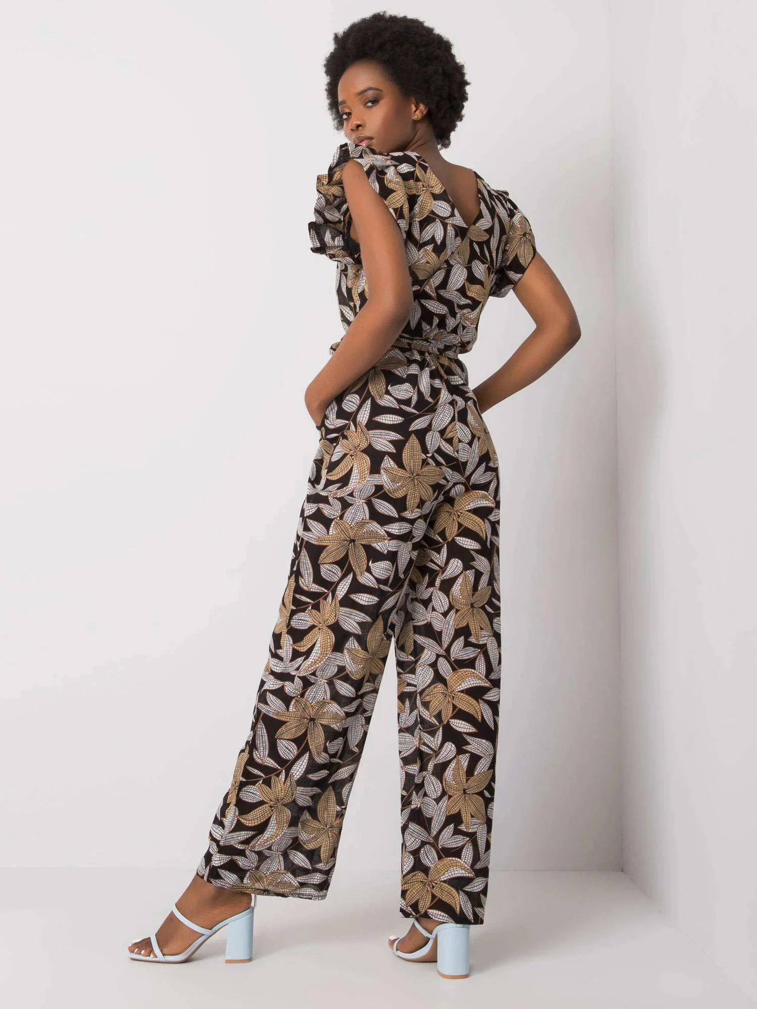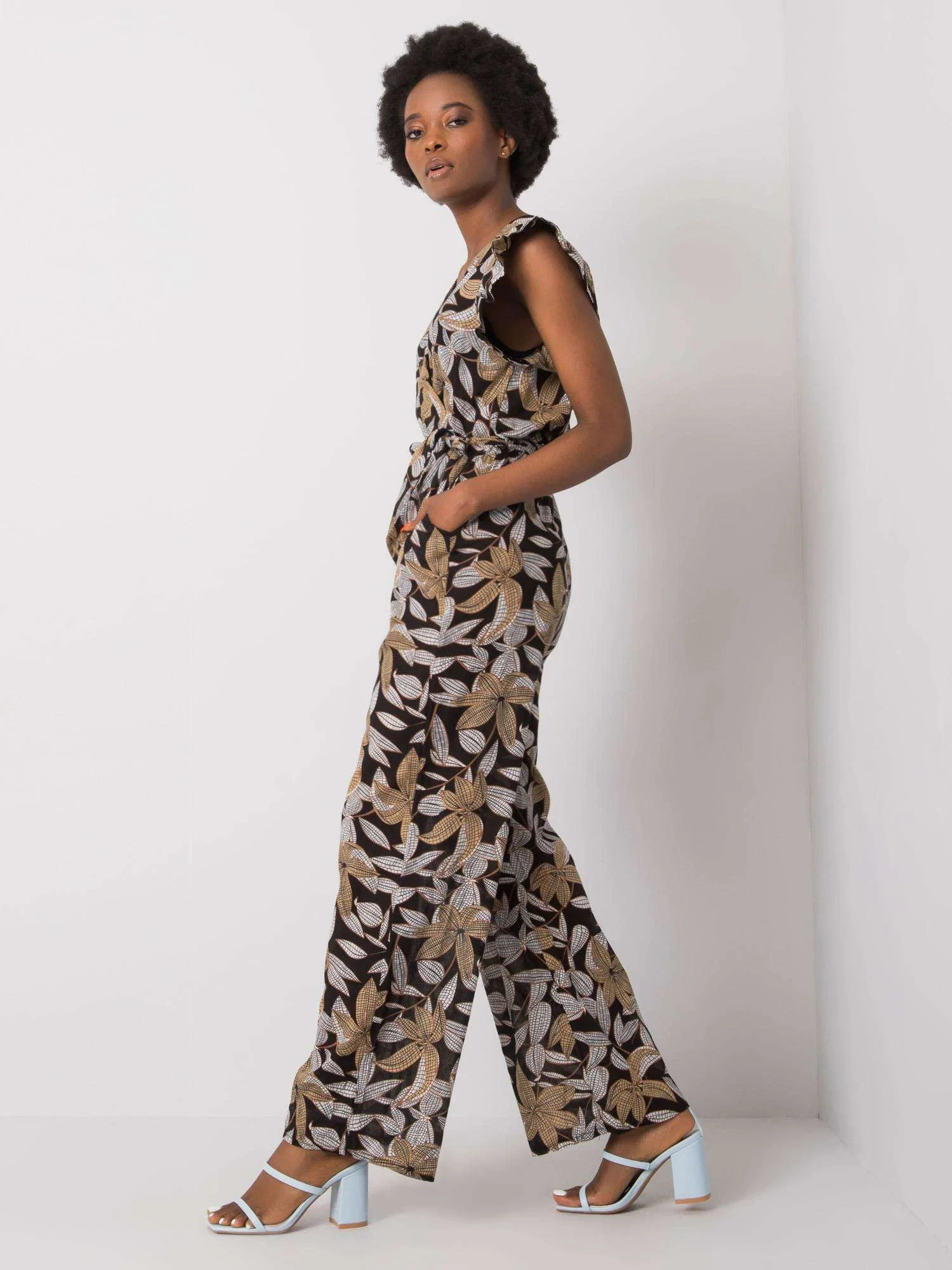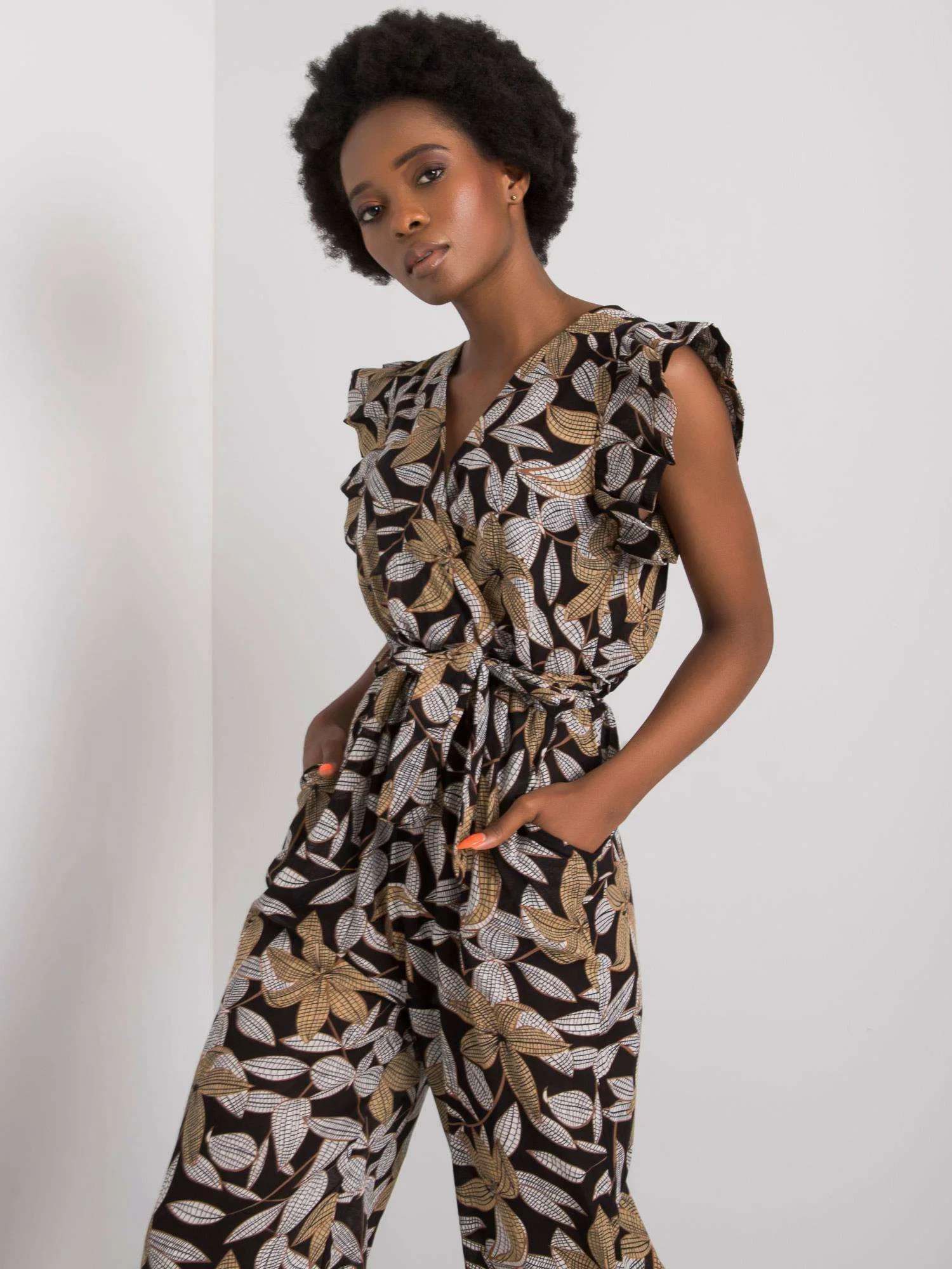 Černý vzorovaný dámský overal.