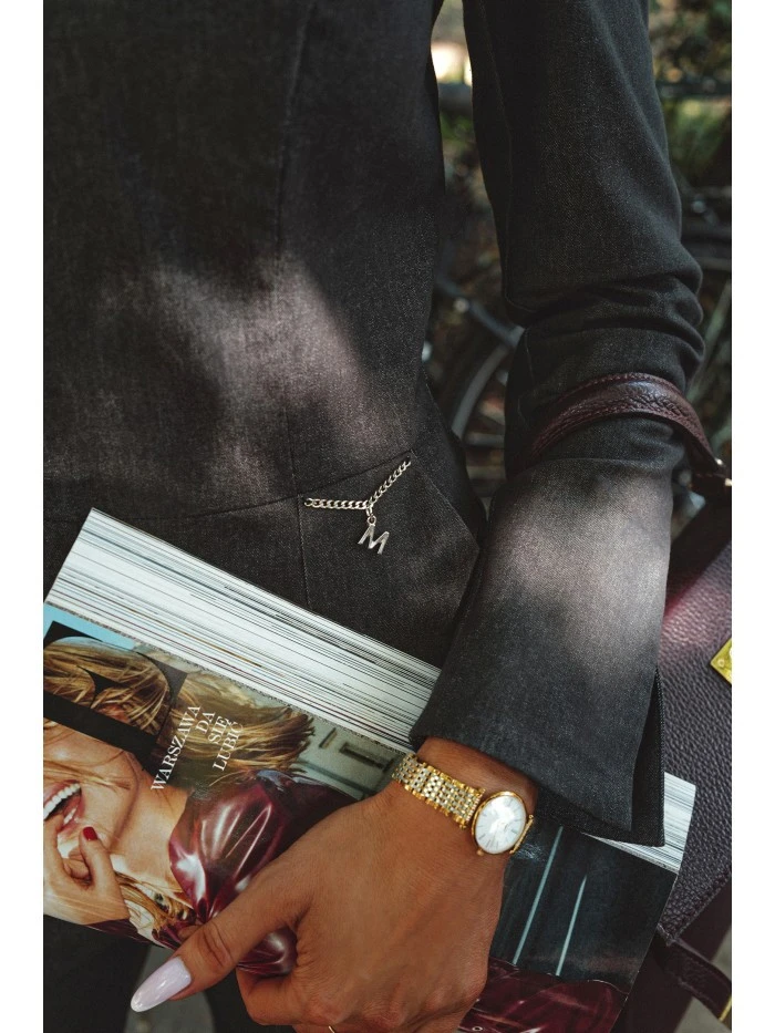 HLAVNÍ LÁTKA: 76 % bavlna 21 % polyester 3 % elastan PODŠÍVKA: 95 % polyester 5 % elastan MATERIÁL Látka: látka džínového vzhledu - mírně tuhá, matná a jemně elastická. PODROBNOSTI O PRODUKTU Výstřih: výstřih do V Rukávy: dlouhé s jemným rozšířením na manžetě Zapínání: skrytý zip na zádech Kapsy: žádné Podšívka: žádná Detaily: kovový řetízek s logem v pase Model: M883 Navrženo a vyrobeno v Polsku Modelka na fotografii měří 171 cm a má na sobě velikost S STŘIH A VÝSTŘIH Střih: tělový Tvar: přesýpací hodiny s výrazně ohraničeným pasem Délka: mini