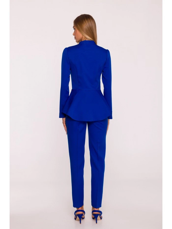 materiál: 95% polyester 5% elastan Tkanina: hladká tkanina s matným povrchem PODROBNOSTI O PRODUKTU Výstřih: výstřih do V s nastavitelnou hloubkou Rukávy: dlouhé Zapínání: vpředu na skrytý zip, vzadu na skrytý zip Pas: vypasovaný, zvýrazněný stylovým peplumem Nohy: zúžené směrem k lemu, délka ke kotníkům Kapsy: žádné Podšívka: žádná Model: M878 Navrženo a vyrobeno v Polsku Modelka na fotografii je vysoká 171 cm a má na sobě velikost S STYL A STŘIH Styl: jednodílný overal, vypasovaný v horní části těla, s peplumem zakrývajícím boky, část hýždí a oblast břicha Tvar: zvýrazňující postavu, s peplumem v pase a zúženými nohavicemi