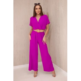 Přidání recenze k Kombinéza s ozdobným páskem v pase fialová