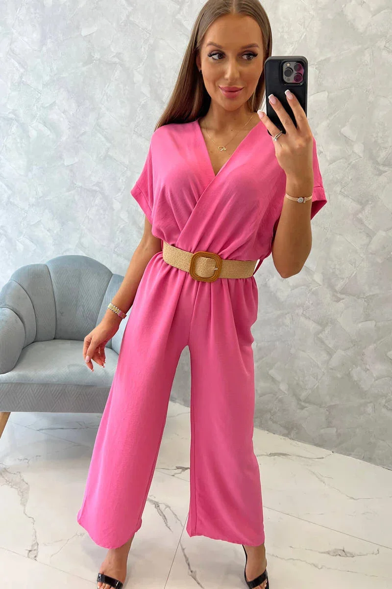 Kombinéza s ozdobným páskem v pase světle růžová