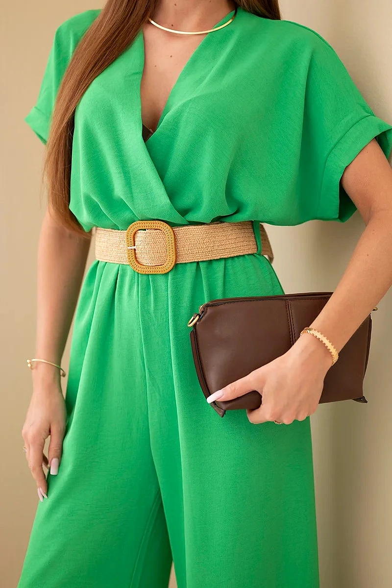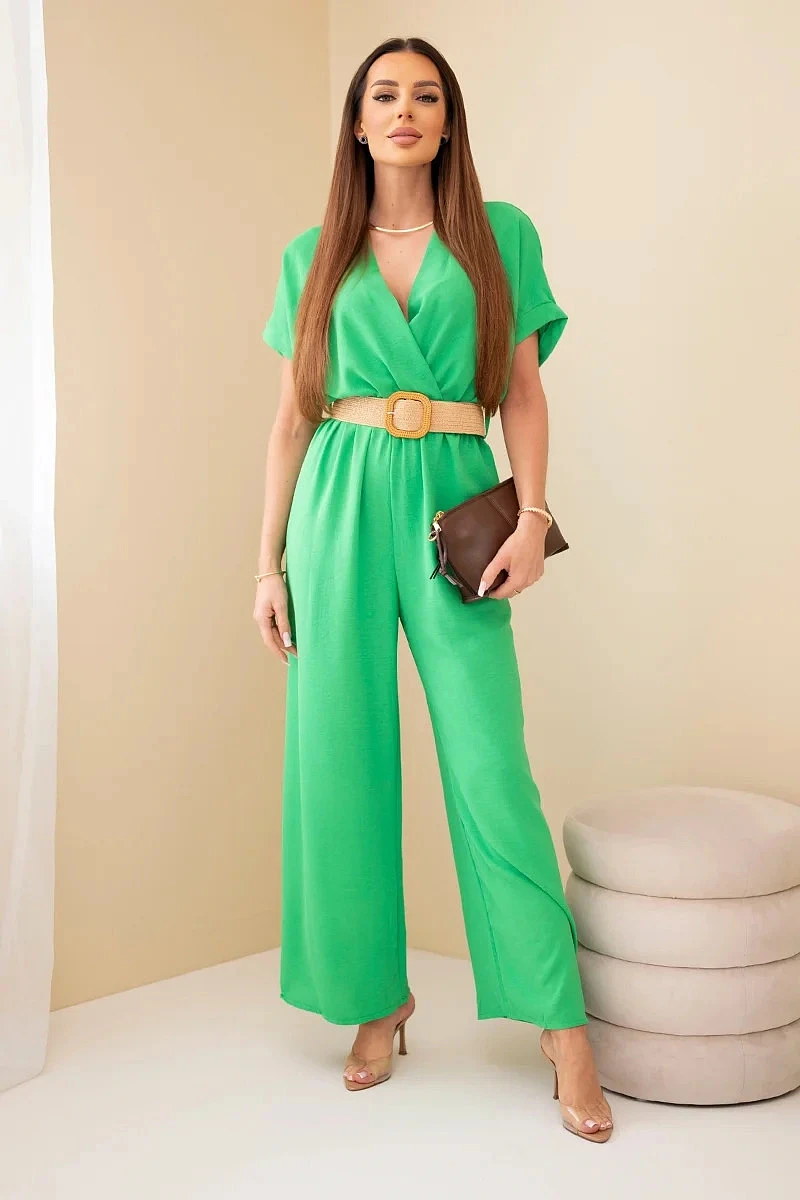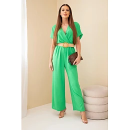 Kombinéza s ozdobným páskem v pase zelený