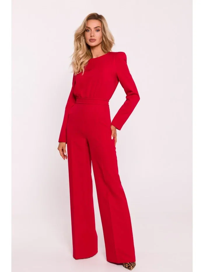 95 % polyester 5 % elastan INFORMACE O PRODUKTU: tkaná látka kombinéza se širokými nohavicemi vypasovaný horní díl a stahování v pase dlouhé rukávy s polstrovanými rameny odhalený zadní zip bez podšívky naše modelka je vysoká 171 cm a nosí velikost S navrženo a vyrobeno v Polsku