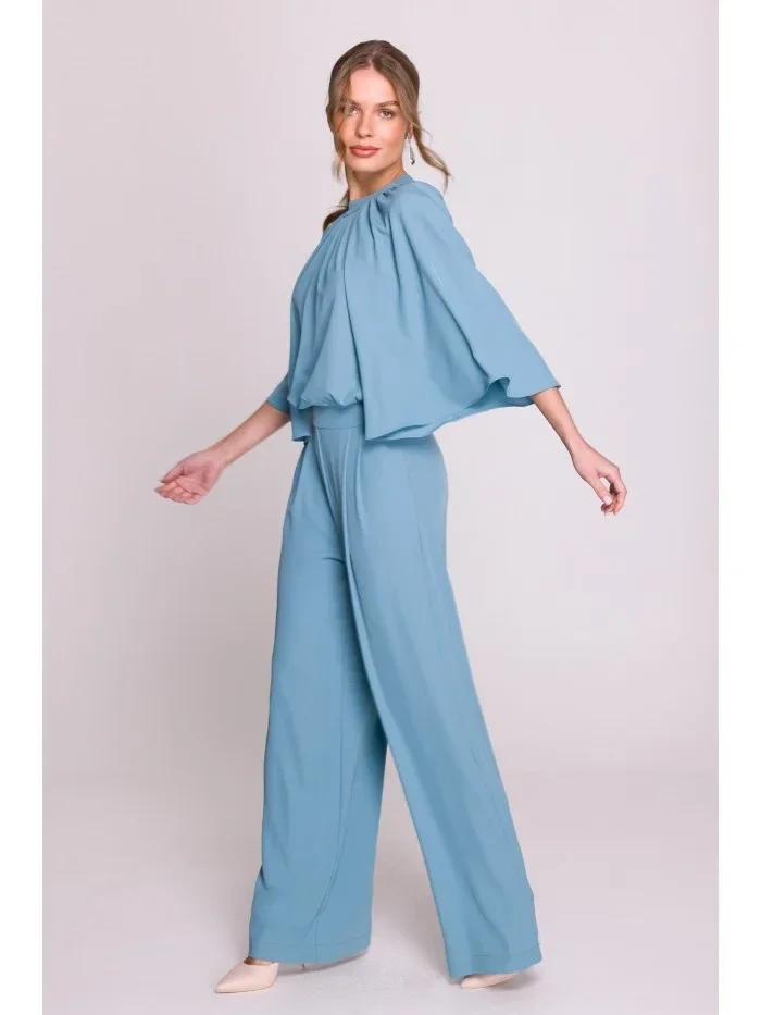 Kombinéza s širokými rukávy a zády modrá model 20966219 - STYLOVE