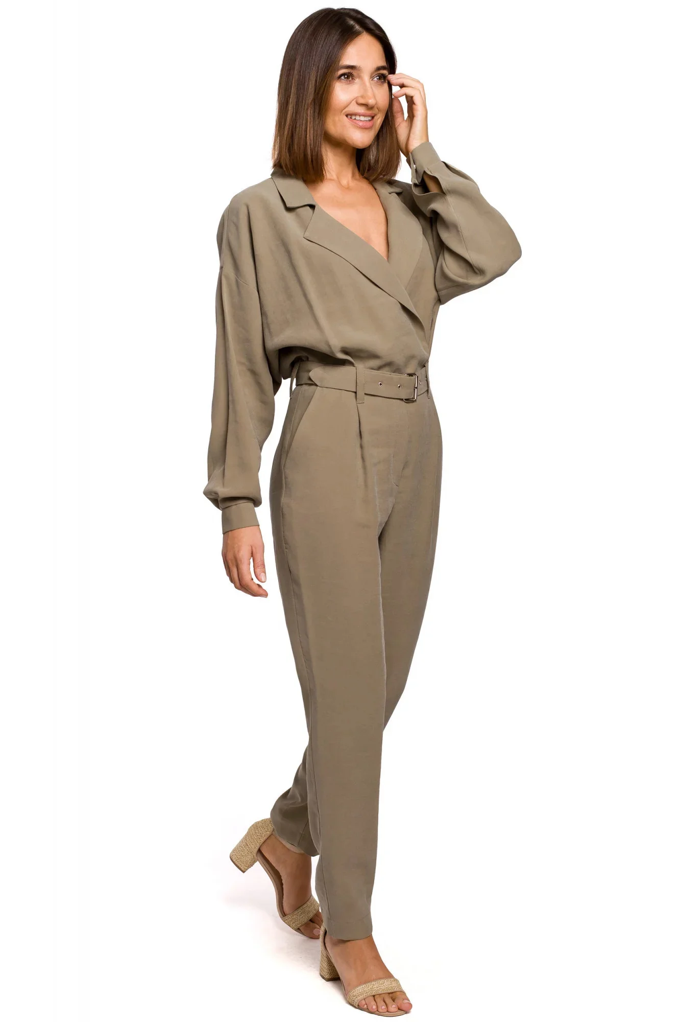 Na tomto užitkovém jednodílném overalu si zamilujete vše : zavinovací límec vpředu, kalhoty ve stylu chino s bočními kapsami a pásek s přezkou.