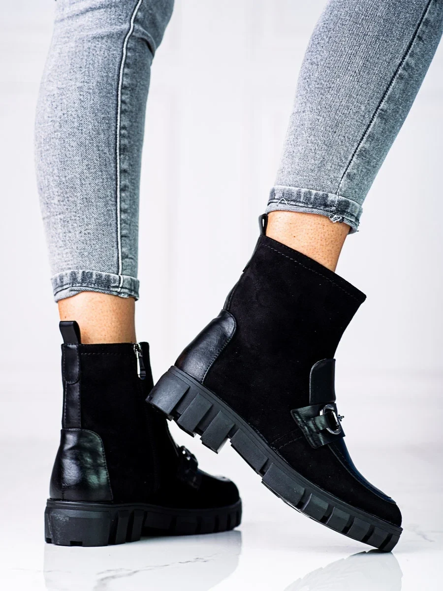 Přidání recenze k Komfortní černé dámské kotníčkové boty na plochém podpatku