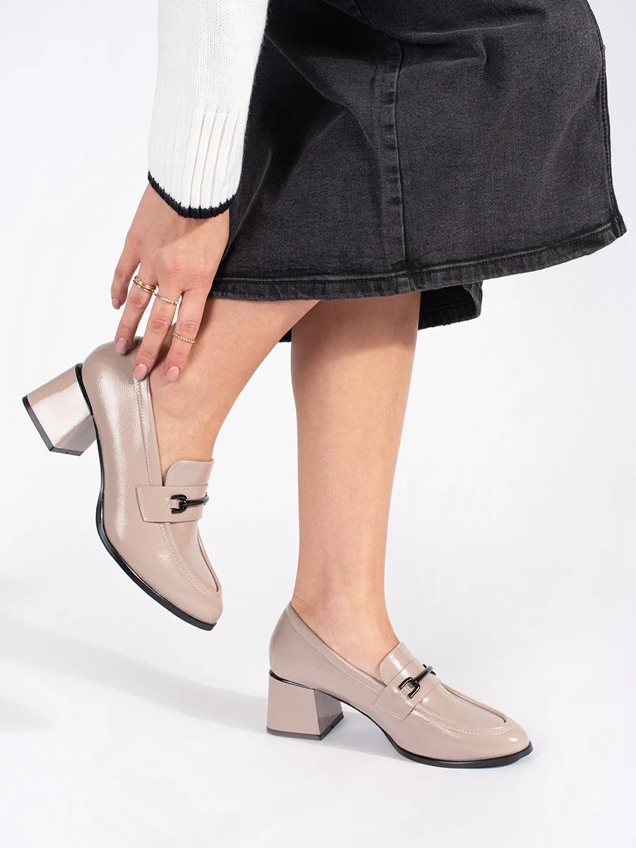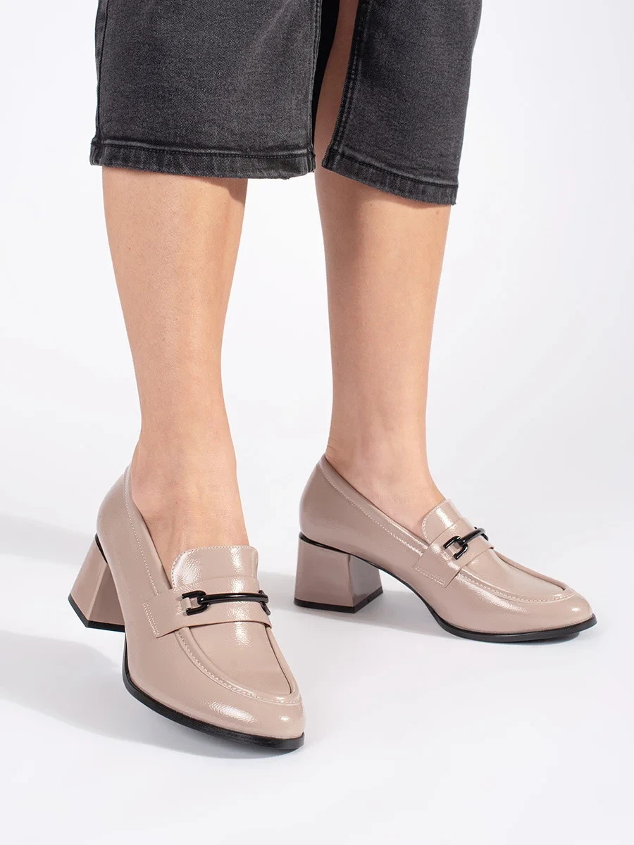 Komfortní dámské hnědé polobotky na širokém podpatku