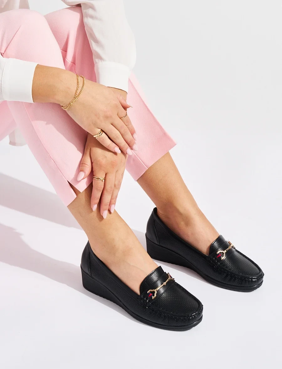 Přidání recenze k Komfortní dámské mokasíny černé na klínku