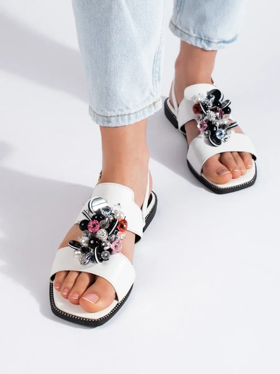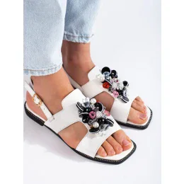Přidání recenze k Komfortní dámské sandály bílé na plochém podpatku