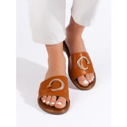Komfortní hnědé dámské nazouváky na plochém podpatku