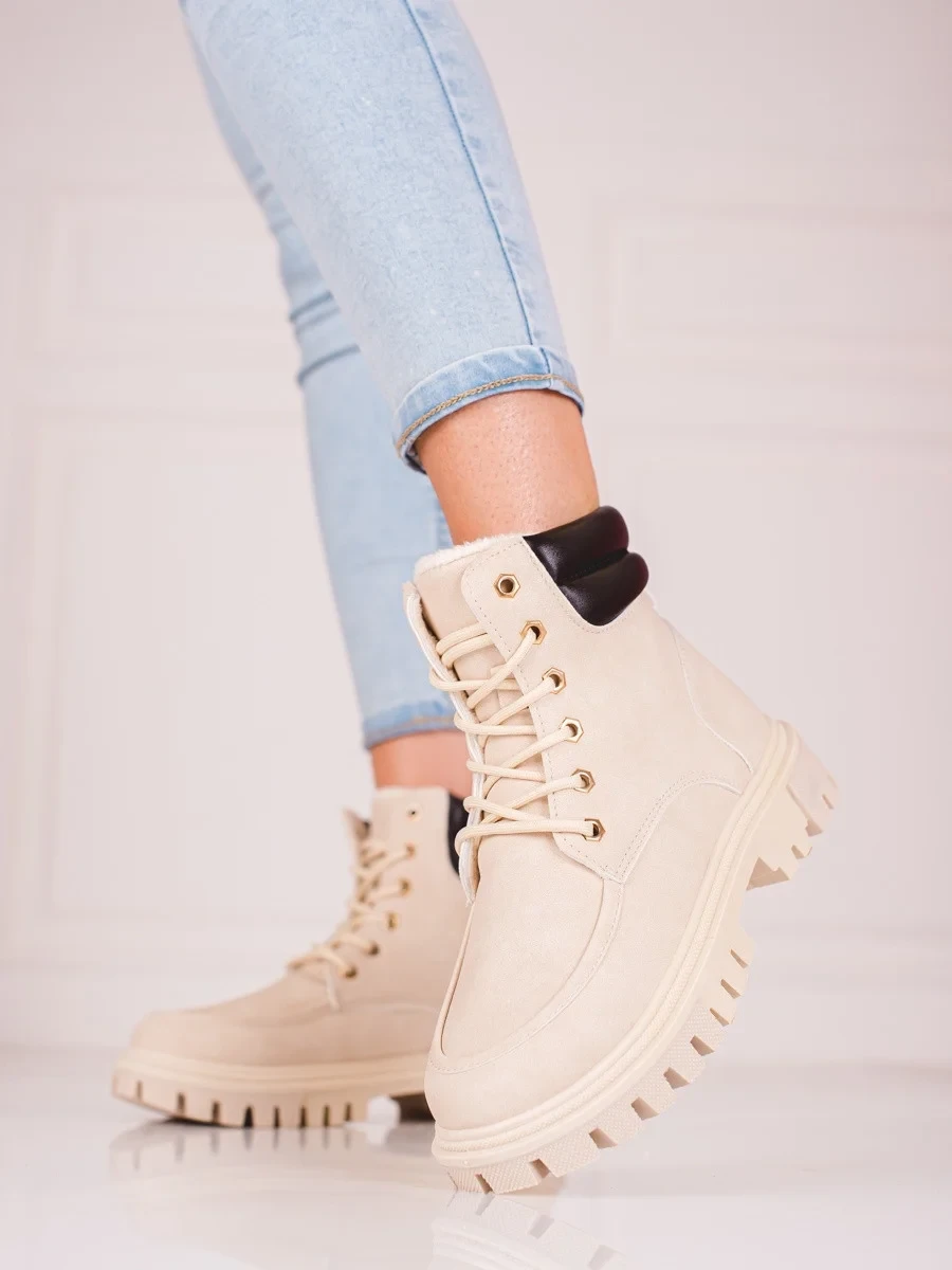 Komfortní hnědé kotníčkové boty dámské na plochém podpatku