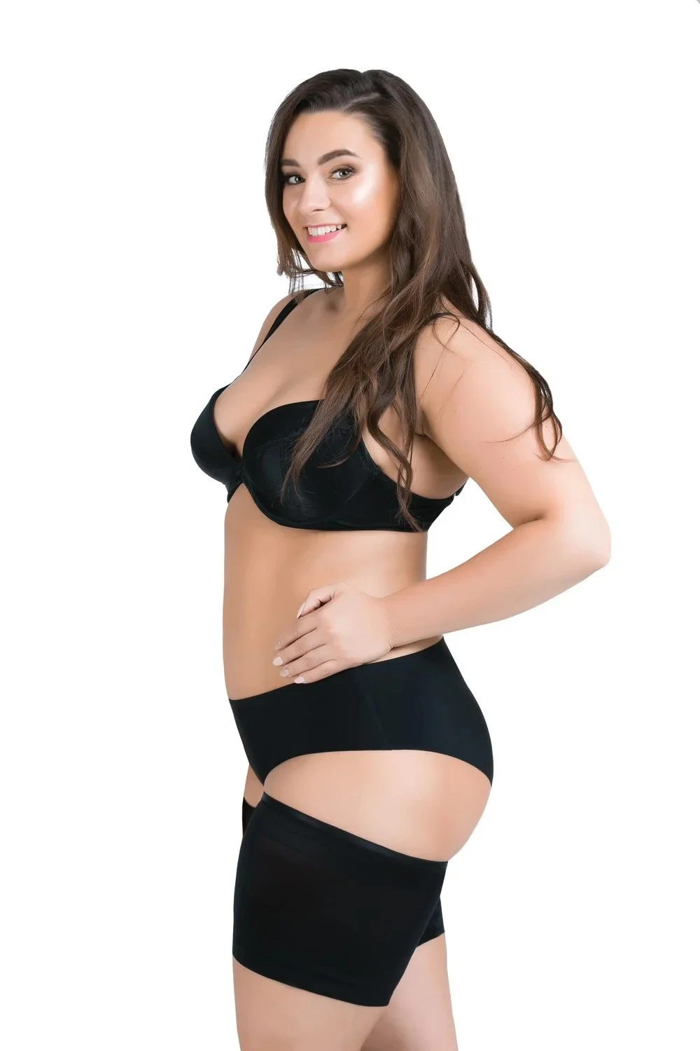 Sada dvou černých stehenních pásů ušitých z měkké, pružné látky. Pásky jsou z vnitřní strany zajištěny silikonem, aby nespadly ze stehen. Skvěle chrání tělo před odřením, zejména v horkém počasí. Složení: 78 % polyamid, 22 % elastan.EAN čárové kódy zboží jsou: