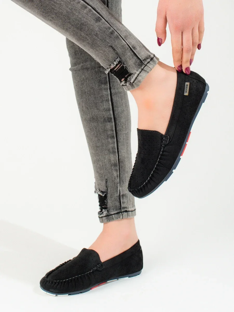 Komfortní mokasíny dámské černé bez podpatku