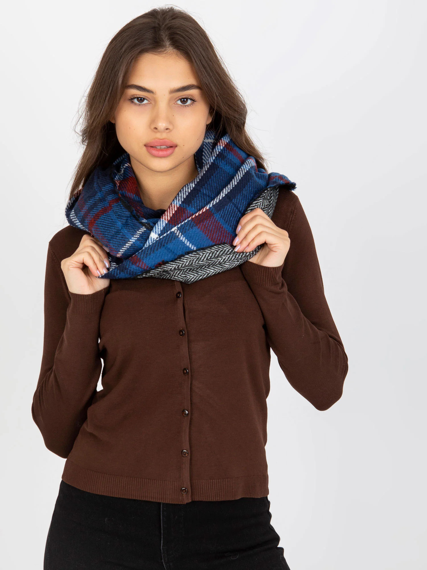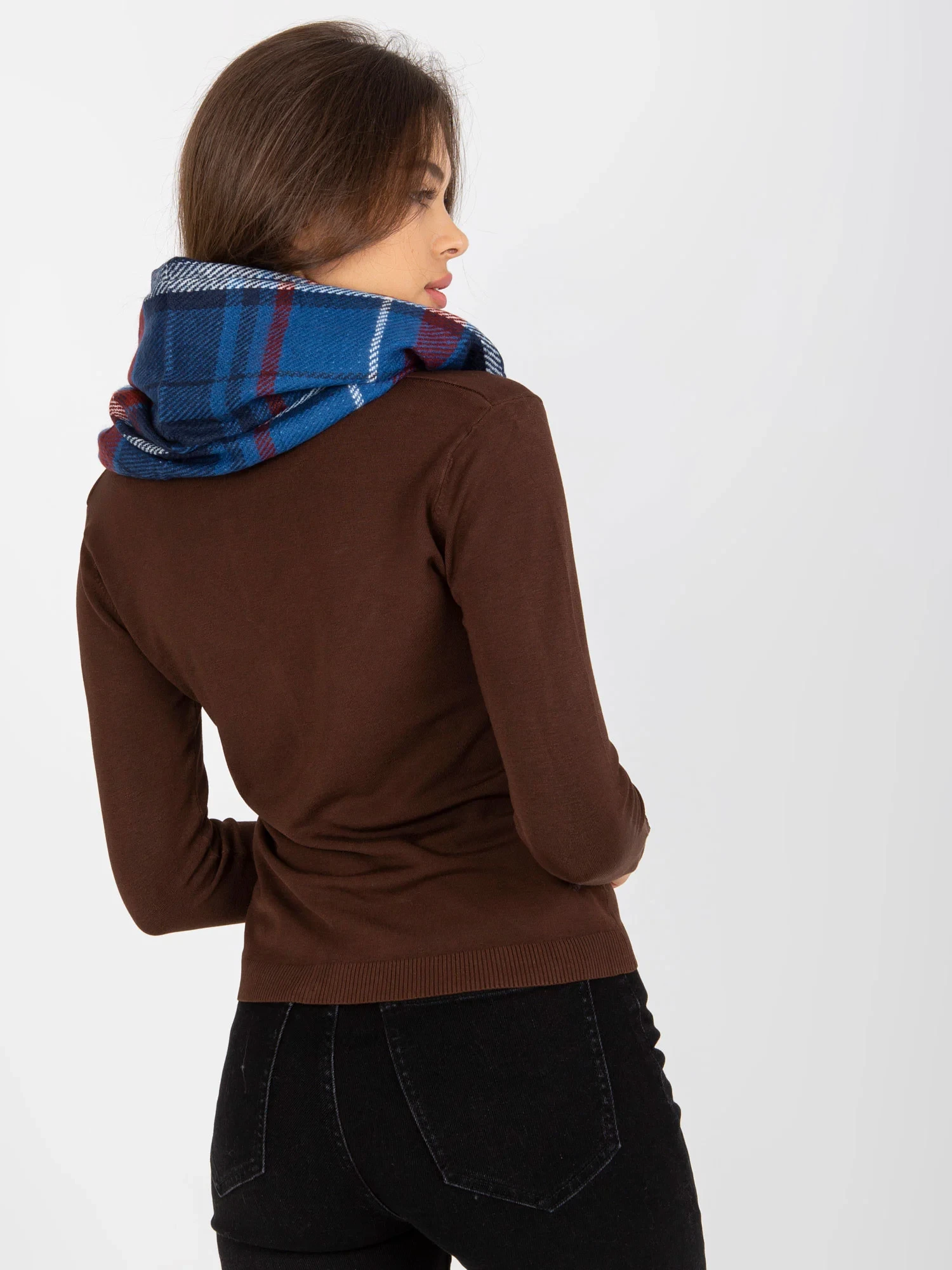 Námořnicky modrý a kaštanový komín s kostkovaným potiskem.