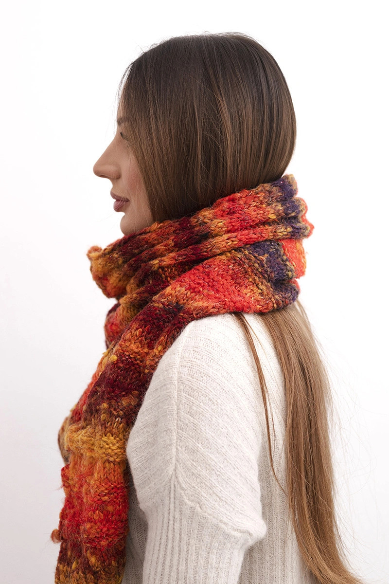 Stylový dámský šátek vyrobený z příjemného na dotek vlákna s příměsí přírodní vlny. Díky své měkké struktuře a teplému materiálu se ideálně hodí na chladnější dny, obepíná krk a dodává kouzlo zimním stylizacím.