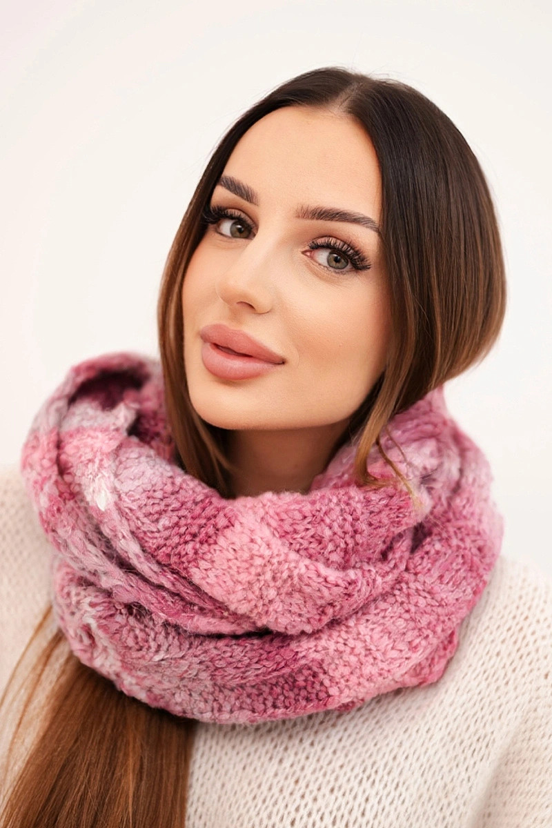 Komin dámský vlněný melírovaný měkký šátek na zimu KN20 tmavě růžový