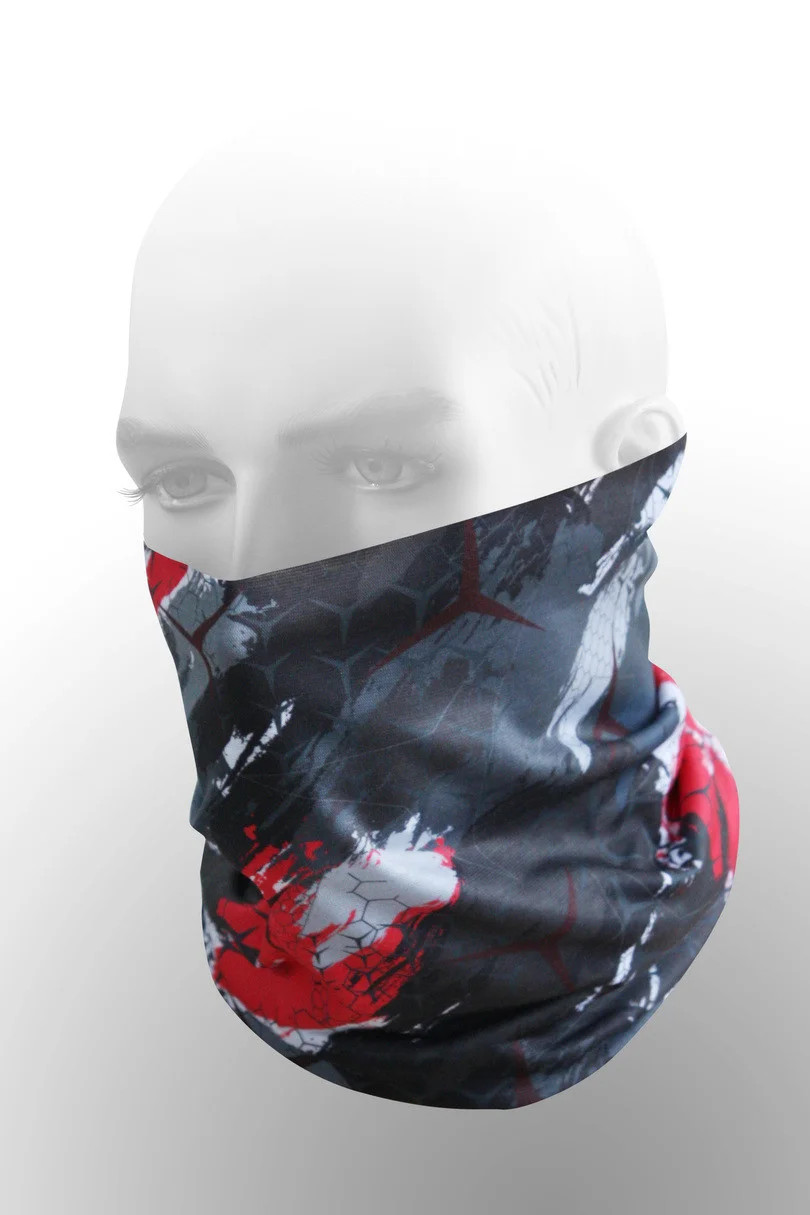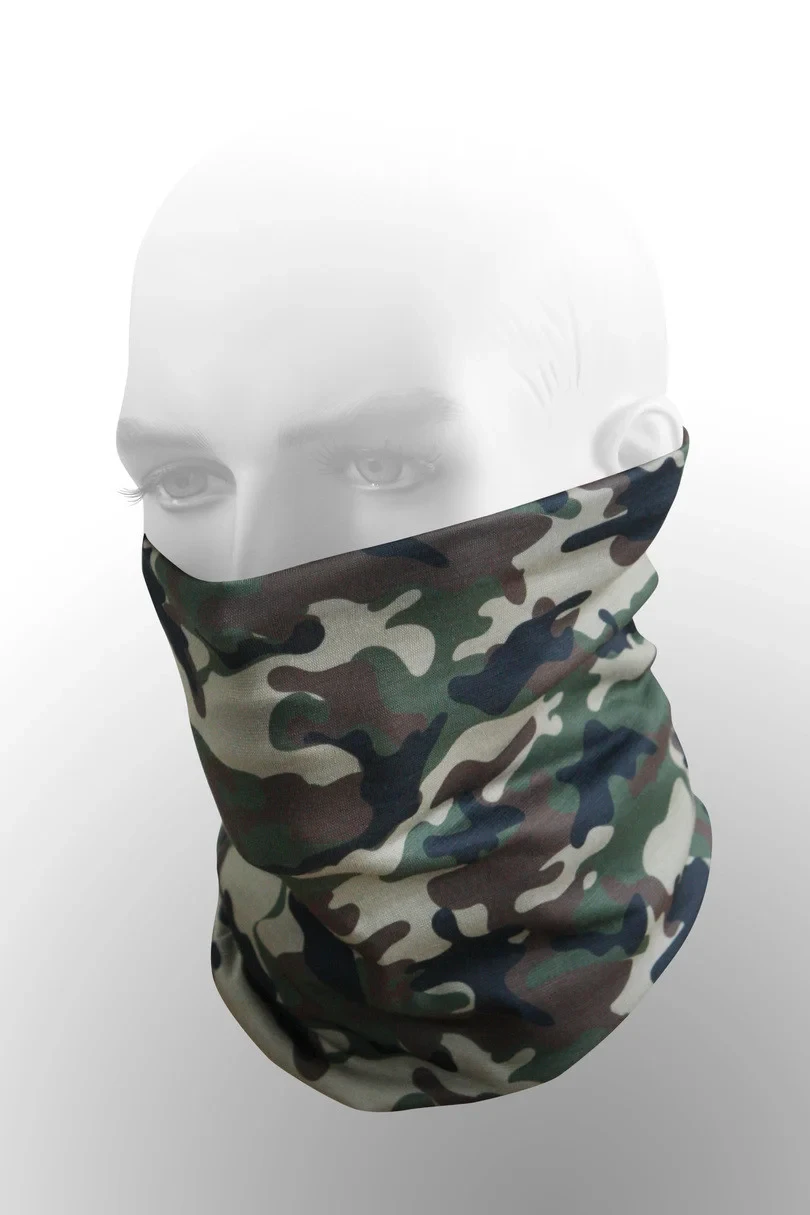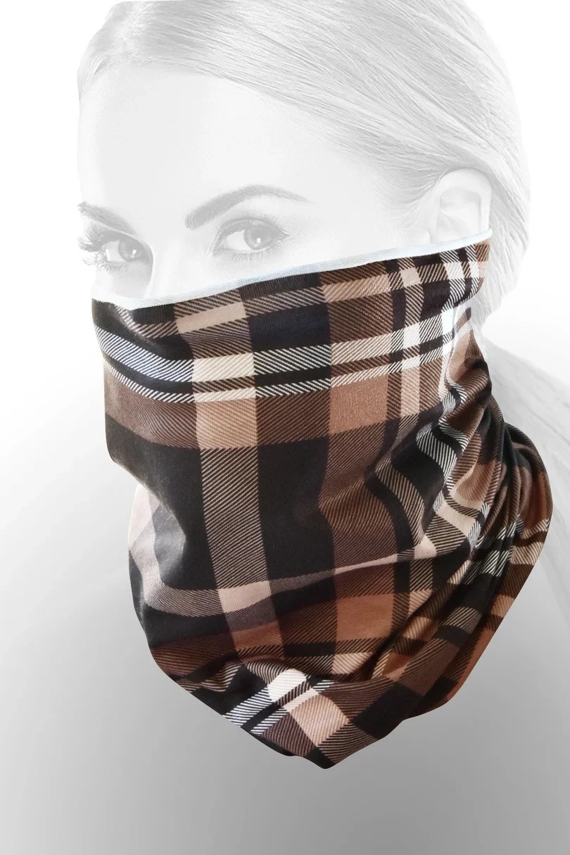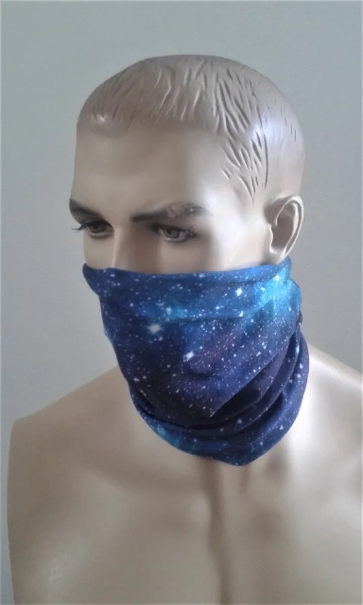 Víceúčelová komínová šála, kterou můžete použít také jako masku pro zakrytí nosu a úst.