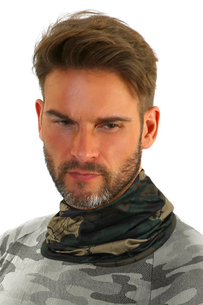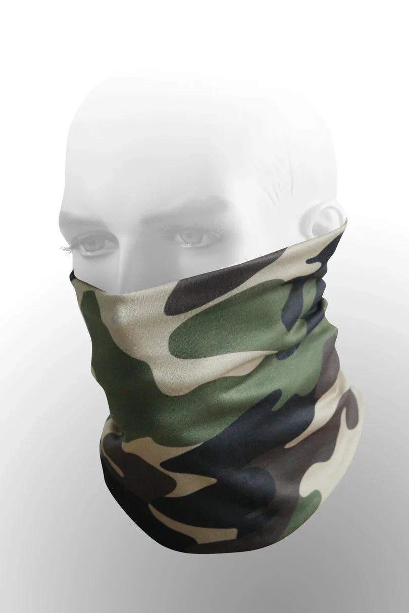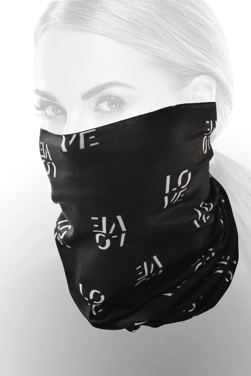 Víceúčelová komínová šála, kterou můžete použít také jako masku pro zakrytí nosu a úst.