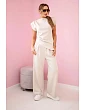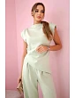 Tento jedinečný komplet je dokonalou kombinací elegance a pohodlí, která podtrhne váš individuální styl. Asymetrická halenka zaujme originálním střihem, který dodává outfitu moderní charakter. Její volný střih krásně padne na postavu, zakrývá drobné nedokonalosti a poskytuje maximální volnost pohybu. Kalhoty, které dokonale ladí s halenkou, mají pohodlný střih, díky čemuž jsou ideální na celodenní nošení. Vyrobené z vysoce kvalitních materiálů, skvěle sedí na postavě a hodí se na každodenní i elegantní kombinace. Komplet asymetrická halenka + kalhoty je skvělou volbou pro ženy, které milují neobvyklé střihy a chtějí vypadat stylově v každé situaci. Perfektní do práce, na setkání nebo speciální příležitosti – vytvořte jedinečný vzhled, který vás odliší od ostatních. Velikost je univerzální a vhodná pro ženy nosící S, M nebo L.