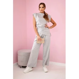 Komplet asymetrická halenka + kalhoty šedý
