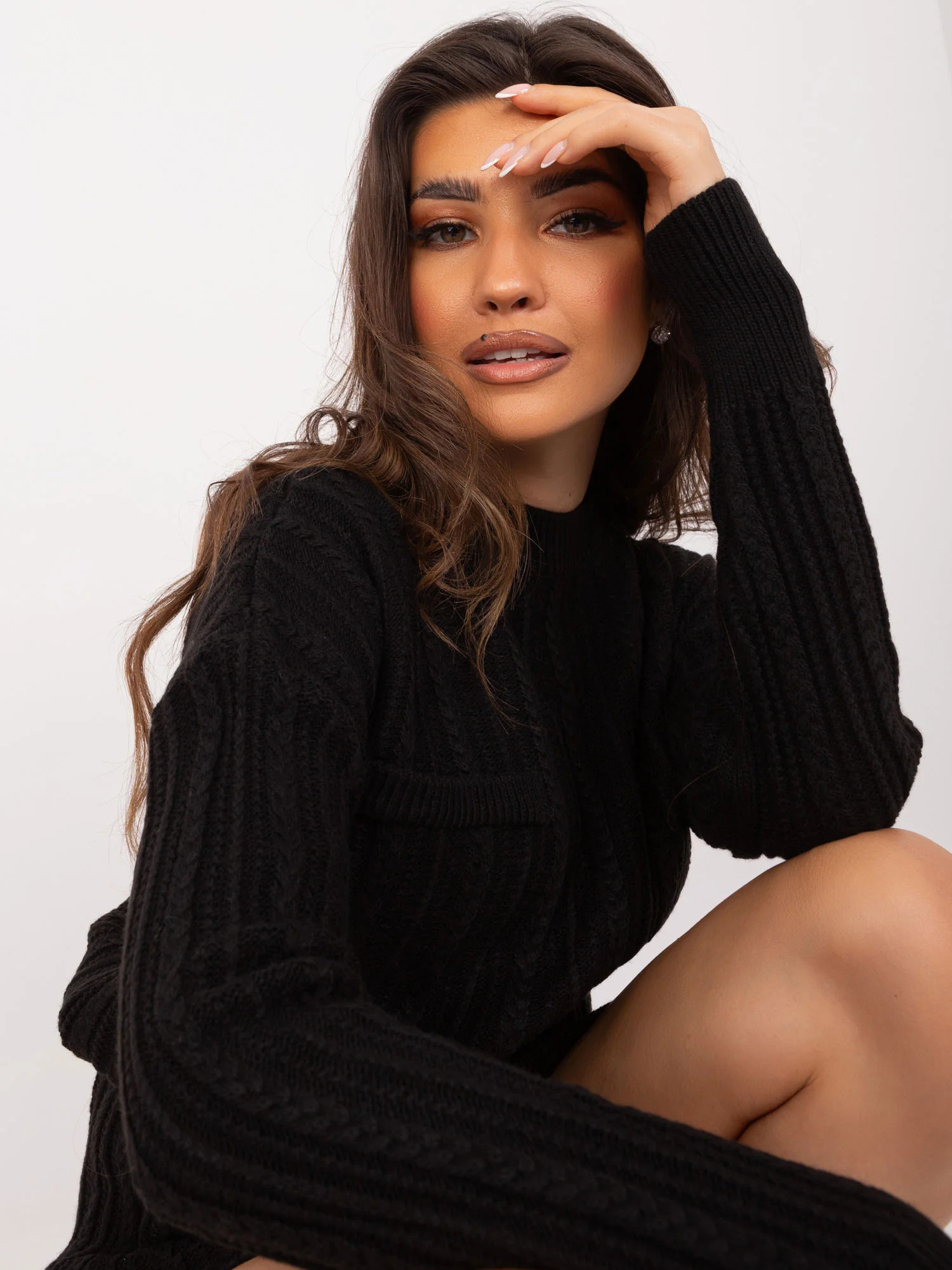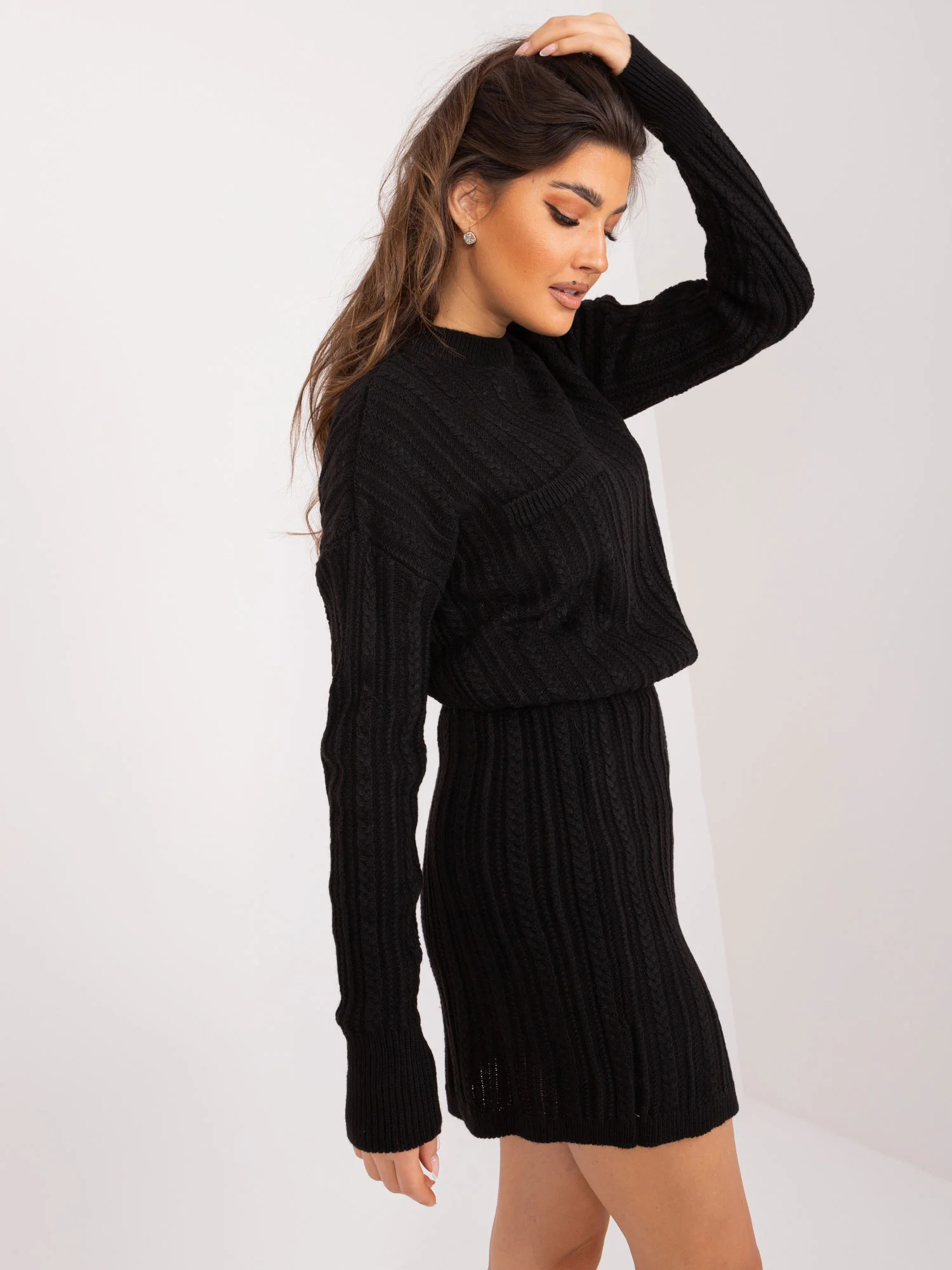 Wymiary kompletu w rozmiarze one size mierzone na płasko: szerokość swetra pod pachami - 64 cm, długość rękawa - 66 cm, długość swetra - 55 cm, szerokość spódnicy w pasie- 30 cm, długość spódnicy- 45 cm .