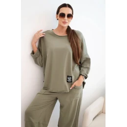 Komplet bavlněný mikina + kalhoty světlá khaki