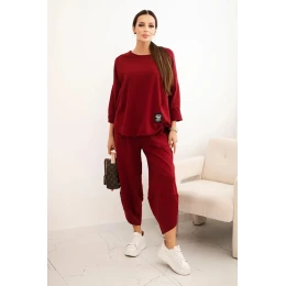 Komplet bavlněný mikina + kalhoty tmavě bordó