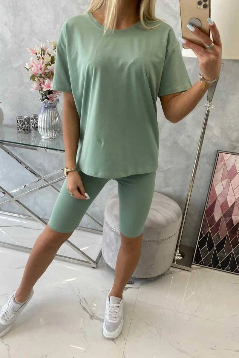 Představujeme vám sadu halenky a kalhot. Hladká halenka bez potisku legíny mají krátkou nohavici. Sada je vyrobena z vysoce kvalitního materiálu. Velikost je univerzální a vyhovuje dámám, které nosí velikost S, M nebo L.
