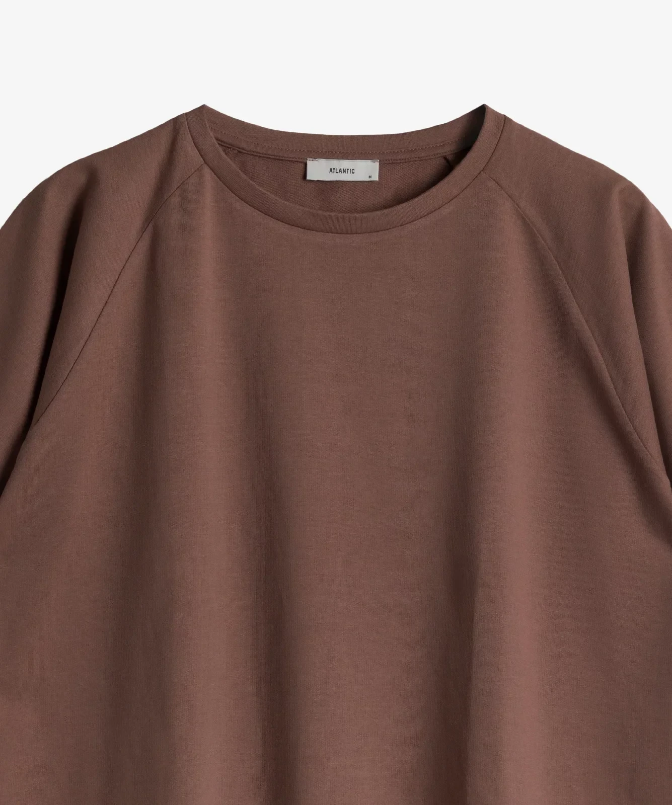 Nasz wielozadaniowy zestaw to koszulka i szorty w odcieniu ciemnego cappuccino. Koszulka ma luźny, nieco oversize’owy wręcz krój, krótkie rękawki oraz okrągłe wycięcie przy szyi. W szortach uwagę zwracają dość krótkie nogawki, praktyczne kieszenie po bokach oraz miękka i nieuciskająca ciała guma w talii. Tak koszulka, jak i szorty ozdobione są małym logo Atlantic po lewej stronie.