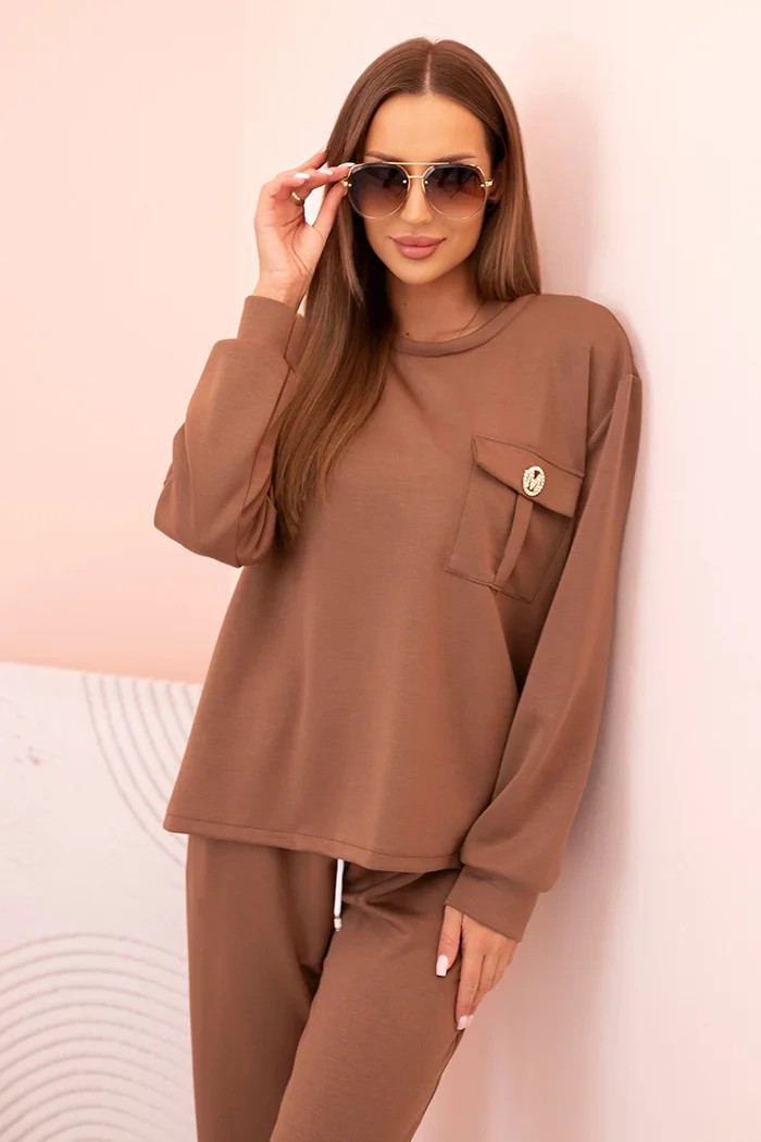 Komplet dámský máslový mikina a kalhoty s gumou camelový