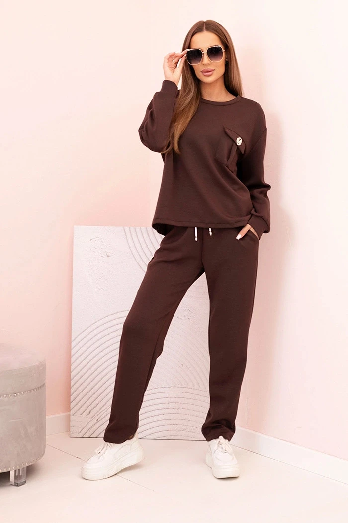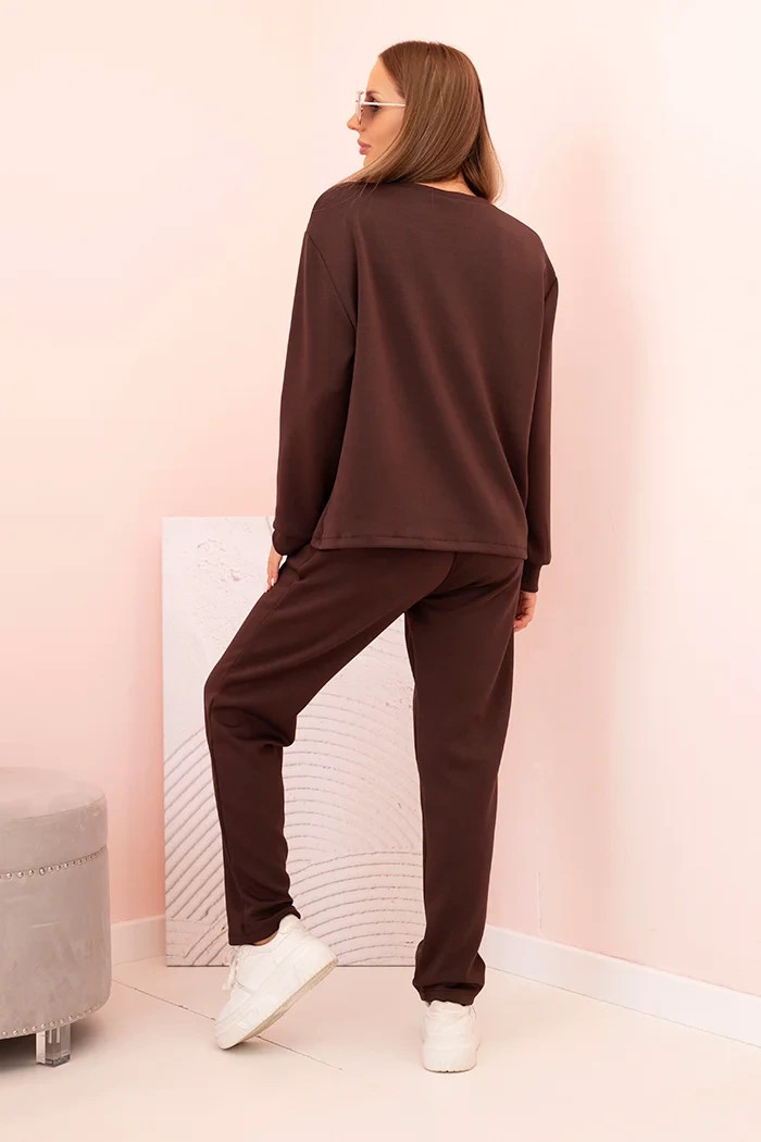 Komplet dámský máslový mikina a kalhoty s gumou hnědý