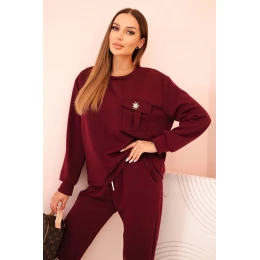 Dámská souprava z máslové látky je ideální nabídkou pro ženy, které si cení pohodlí, módního vzhledu a vysoké kvality textilu. Mikina s jednoduchým střihem a dekorativní kapsou s klopou skvěle vypadá v každodenních stylizacích. Kalhoty s rovnou nohavicí a elastickým páskem zajišťují pohodlí po celý den a přizpůsobují se postavě.