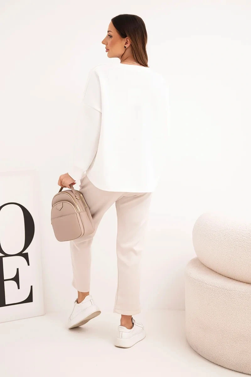 Komplet dámský máslový s kontrastní kapsičkou béžový