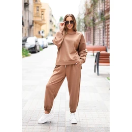 Komplet dámský máslový s volnou mikinou a kalhotami s nápisem LOVE tmavě camelový