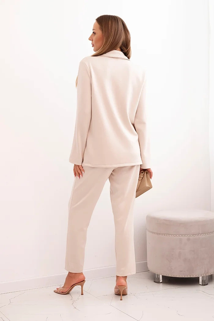 Komplet dámský s viskózou s ozdobami a elastickými kalhotami béžový