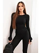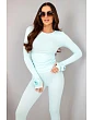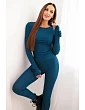 Blůzka se subtilním nařasením po stranách a přiléhavý střih legín krásně podtrhují ženskou postavu. Minimalistický střih dělá, že se komplet skvěle kombinuje s dalšími prvky garderoby, a zároveň vypadá stylově sám o sobě. Ideální na podzim a zimu jako základ pod kardigan nebo bundu.