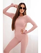 Komplet dámský z proužkované viskózy s dlouhým rukávem a legínami světle růžový