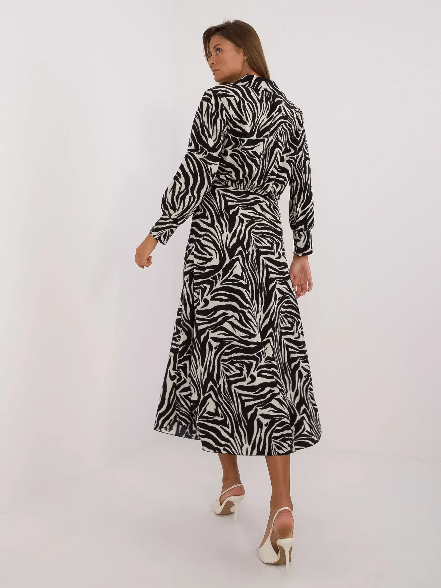 Modelka ma na sobie rozmiar one size. Wymiary modelki: wzrost 176 cm, biust 85 cm, talia 64 cm, biodra 92 cm.