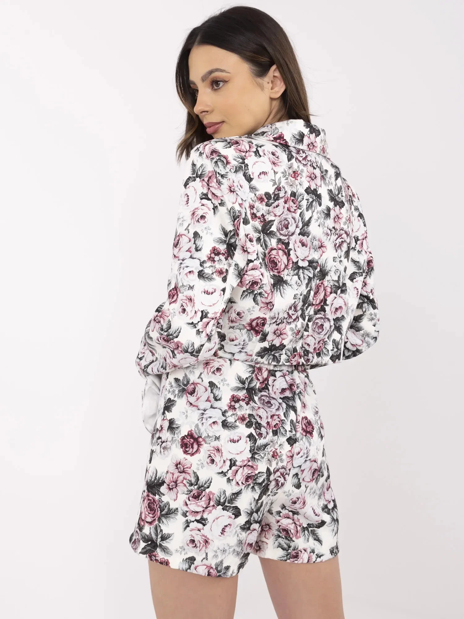 Wymiary marynarki w rozmiarze S/M. mierzone na płasko: szerokość pod pachami - 51 cm, szerokość w biodrach - 43 cm, długość rękawa - 62 cm, długość całkowita - 42 cm.