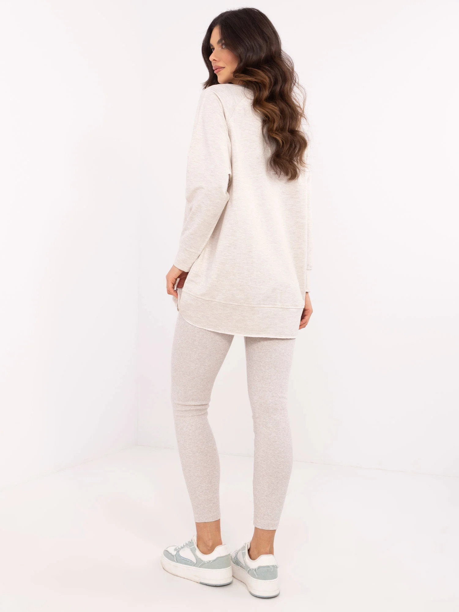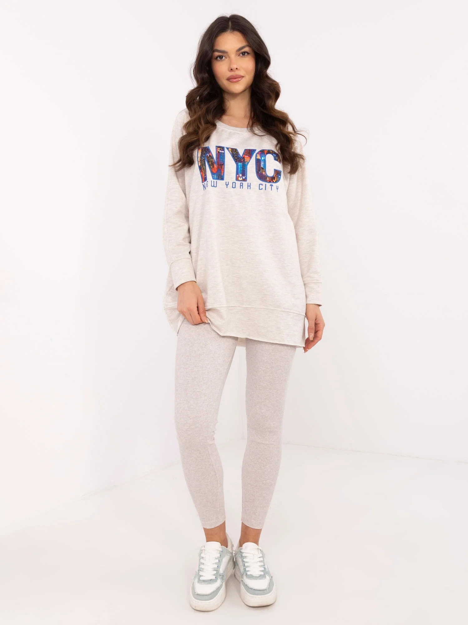 Wymiary bluzy w rozmiarze one size mierzone na płasko: szerokość bluzy pod pachami - 68 cm długość rękawa - 58 cm, długość bluzy - 80 cm.