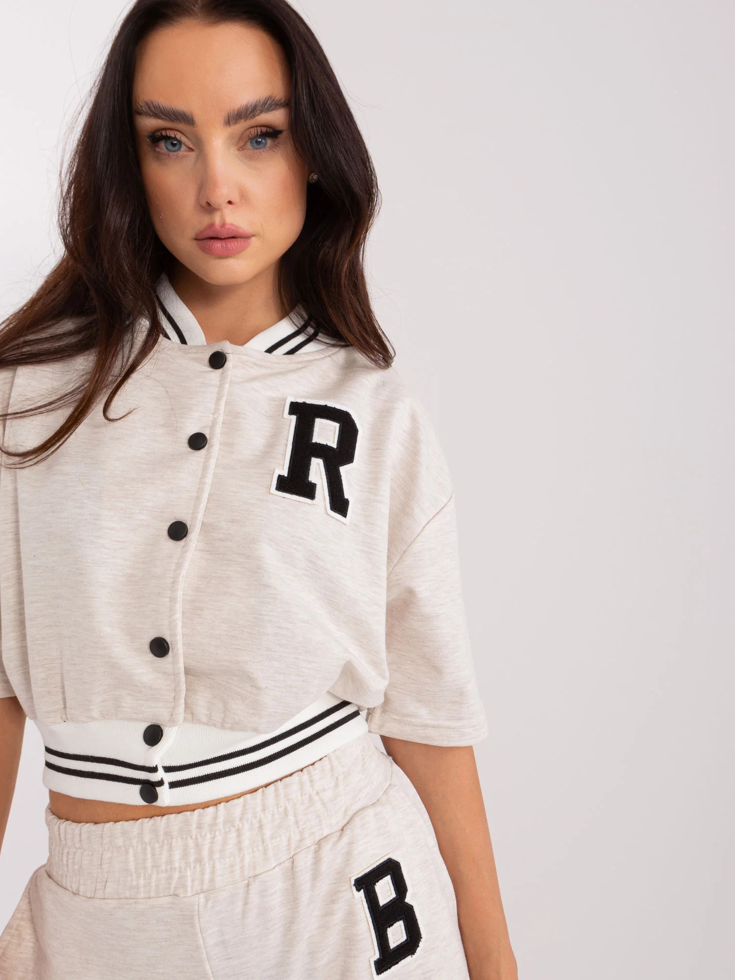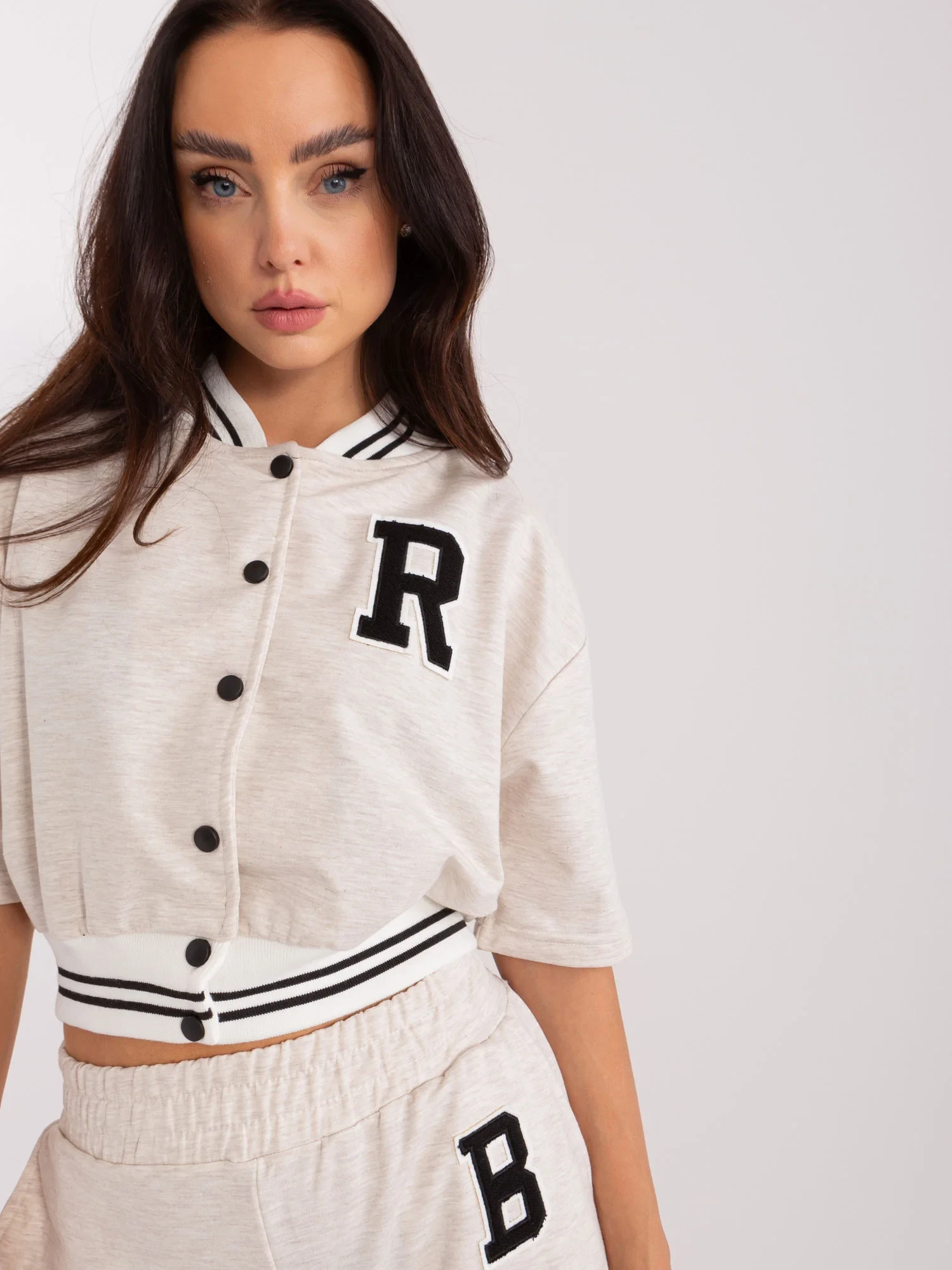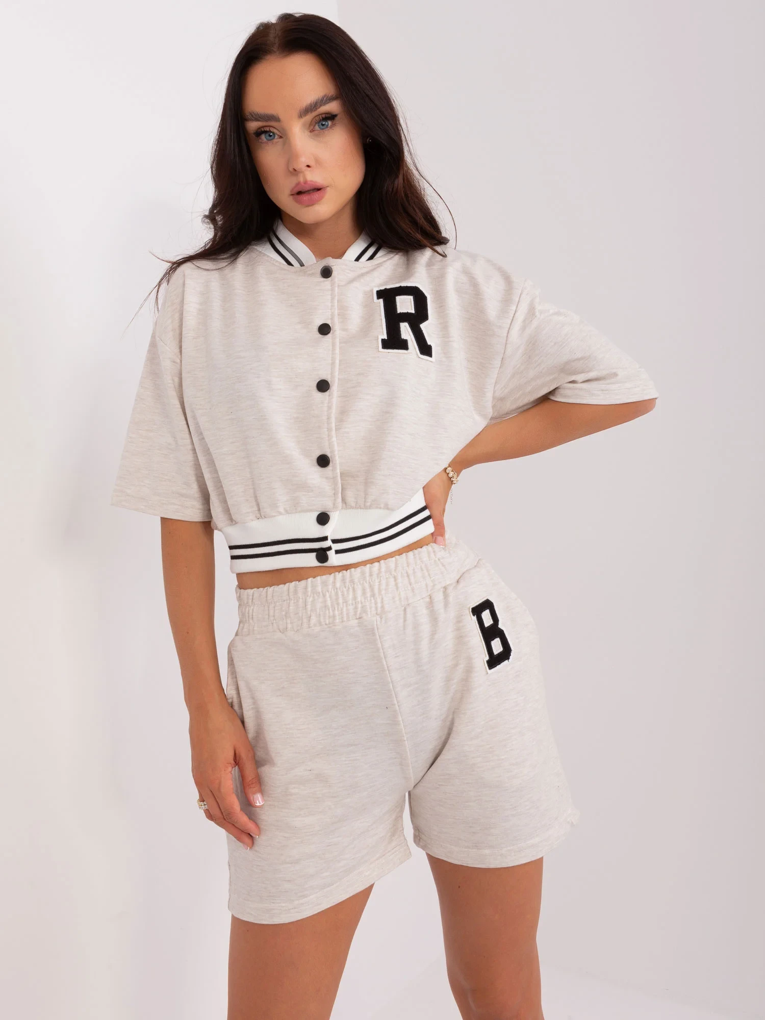 Wymiary kompletu w rozmiarze one size mierzone na płasko: szerokość bluzy pod pachami - 52 cm, długość rękawa - 22 cm, długość bluzy - 46 cm, szerokość w pasie - 30 cm, długość szortów - 39 cm.