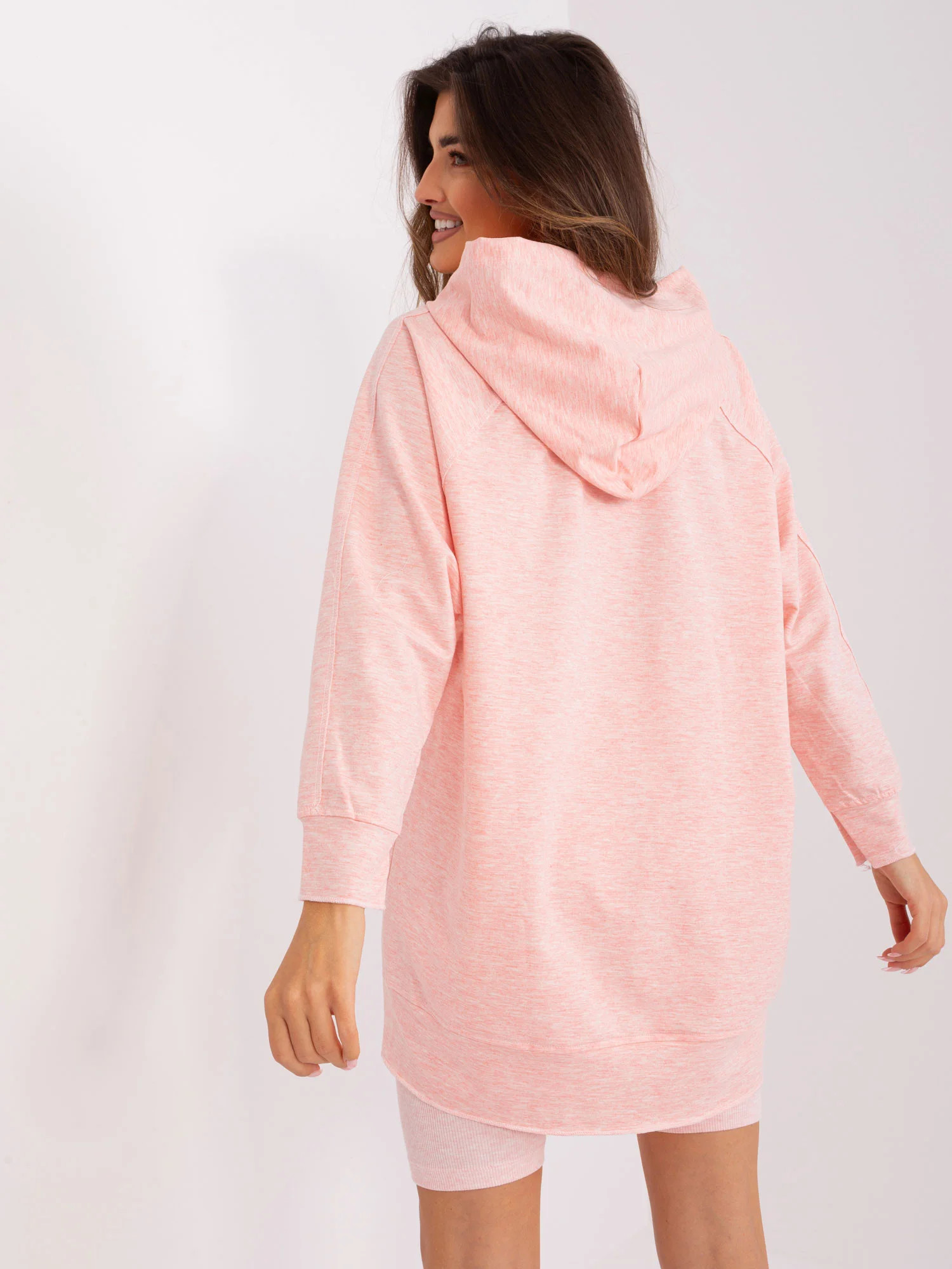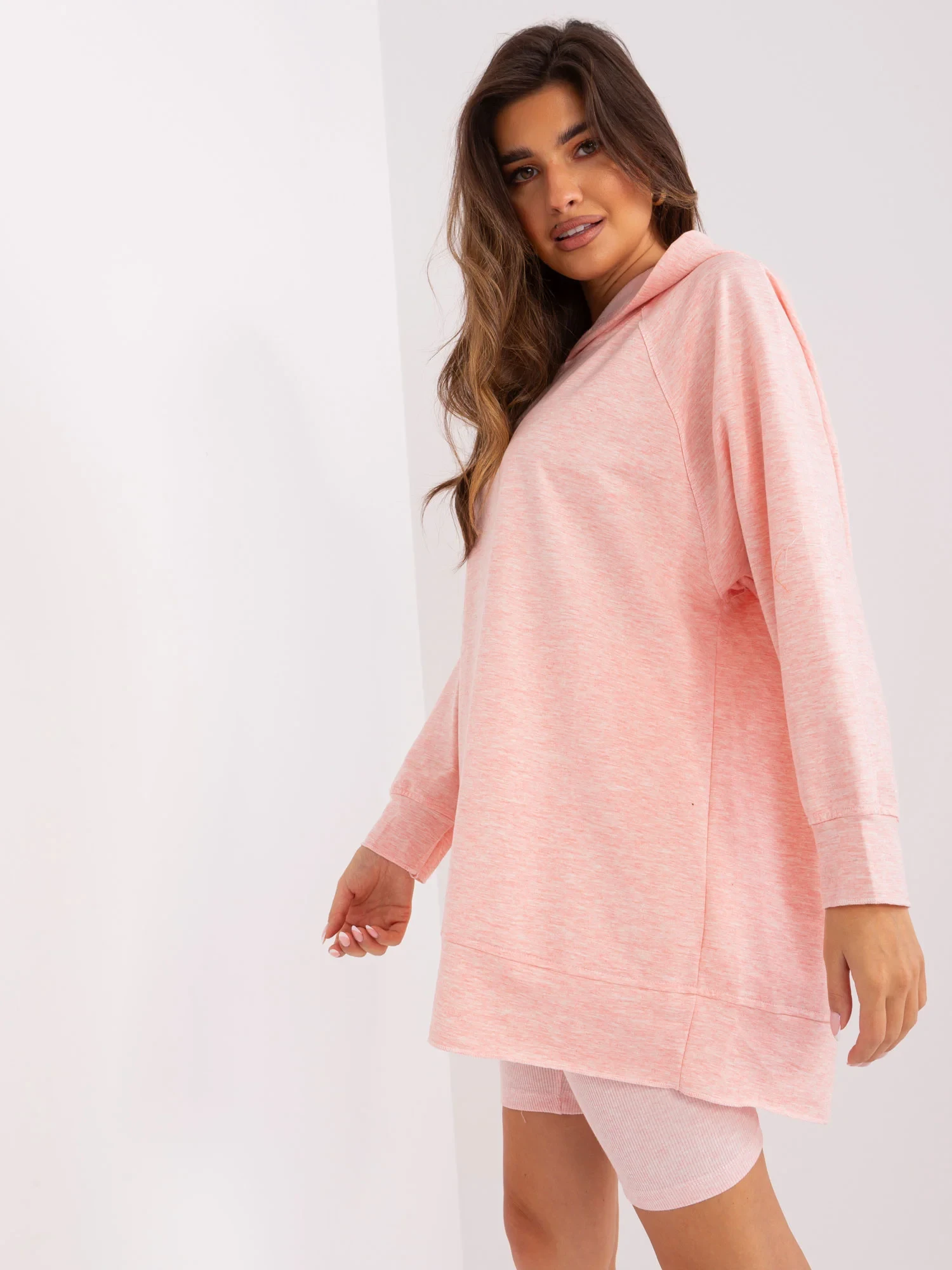 Wymiary kompletu w rozmiarze one size mierzone na płasko: szerokość pod pachami - 64 cm, długość rękawa - 56 cm, długość bluzy - 78 cm, szerokość w pasie - 32 cm, długość kolarek - 50 cm.