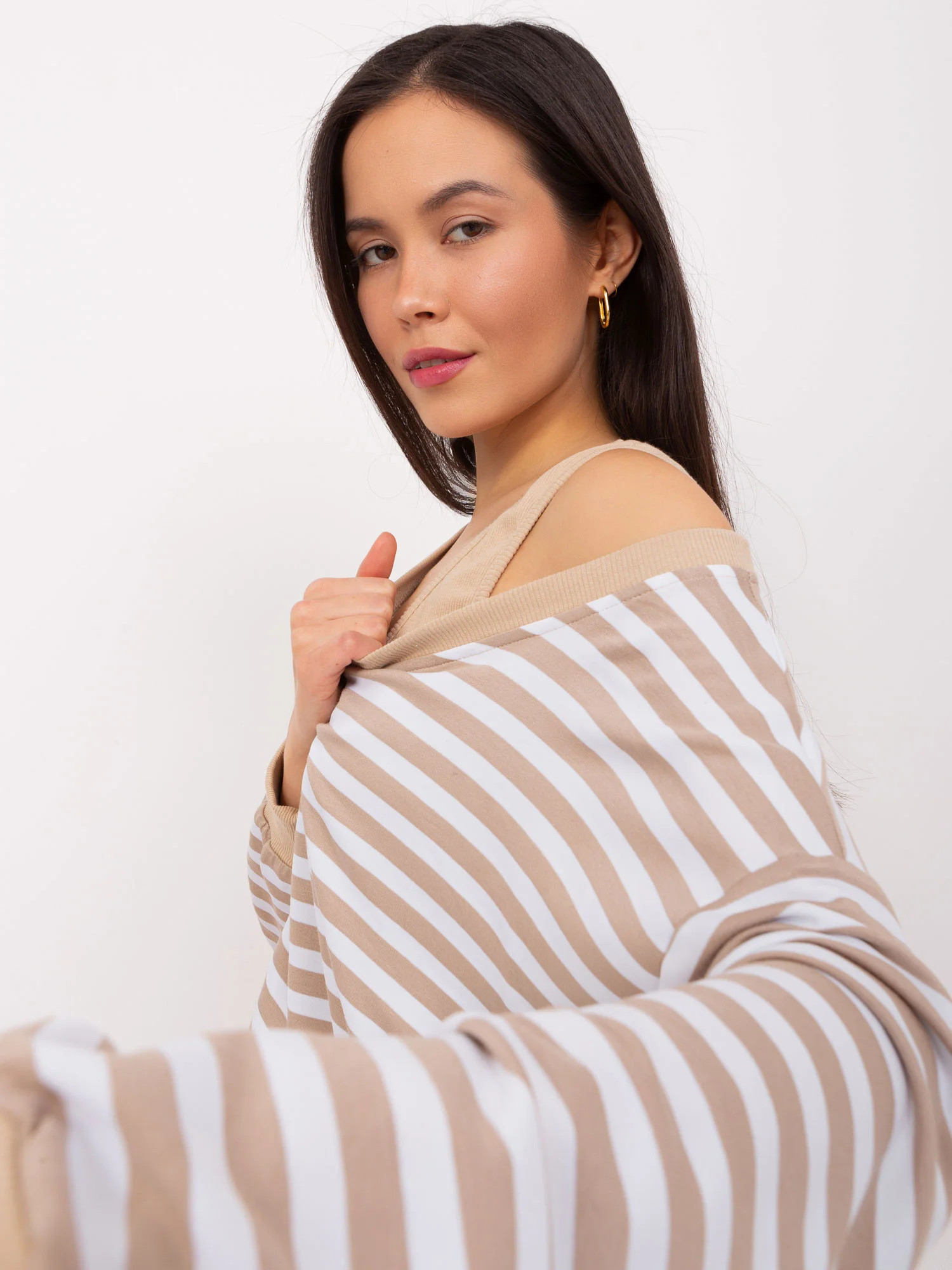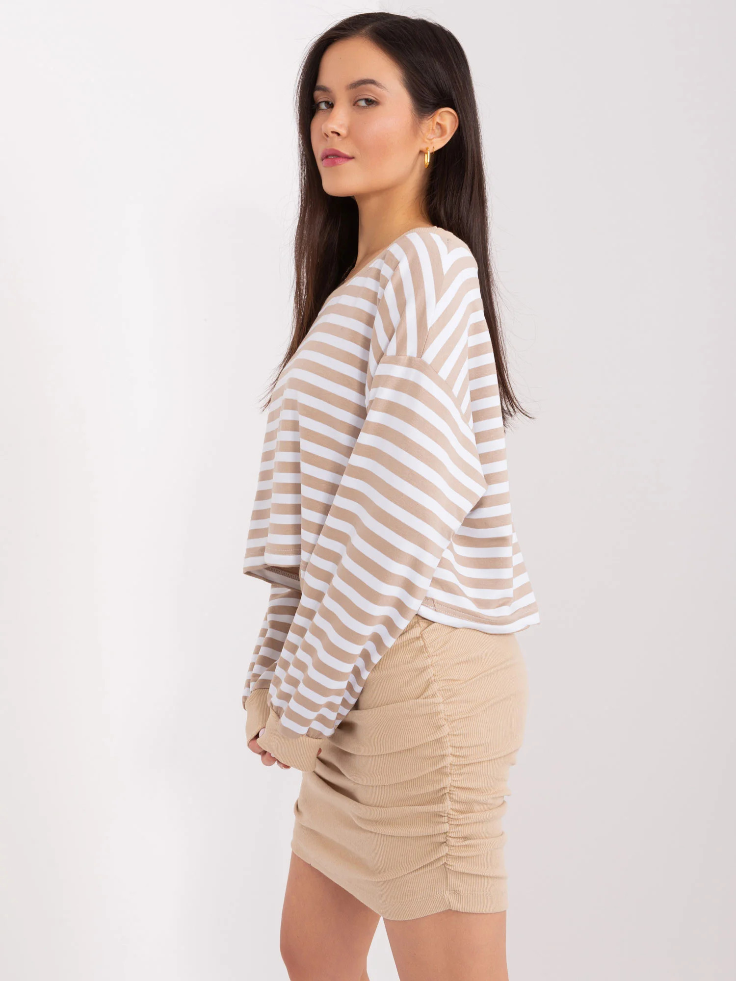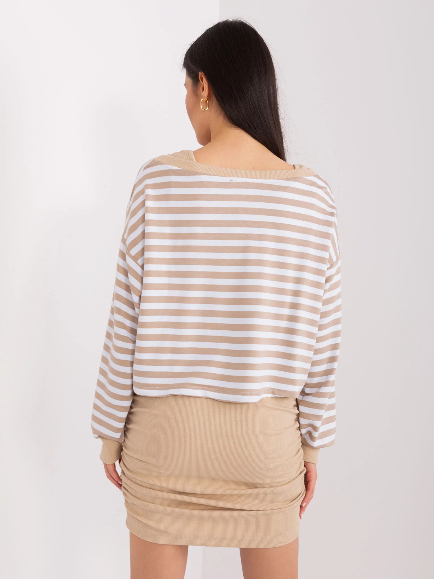 Modelka ma na sobie rozmiar one size. Wymiary modelki: wzrost 168 cm, biust 81 cm, talia 62 cm, biodra 90 cm.