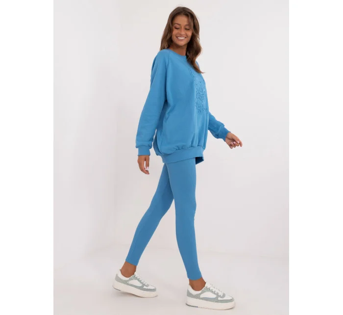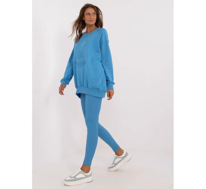 Wymiary kompletu w rozmiarze one size mierzone na płasko: szerokość bluzy pod pachami - 70 cm, długość bluzy - 74 cm, długość rękawa - 64 cm, szerokość legginsów w pasie - 30 cm, wysokość stanu - 28 cm, długość legginsów - 98 cm.