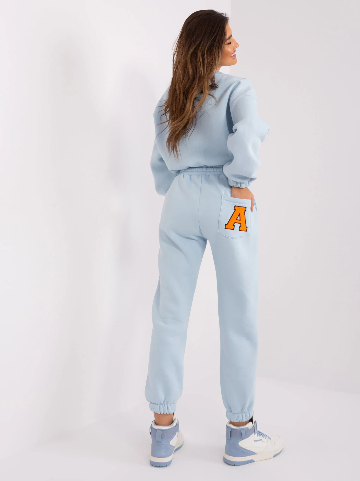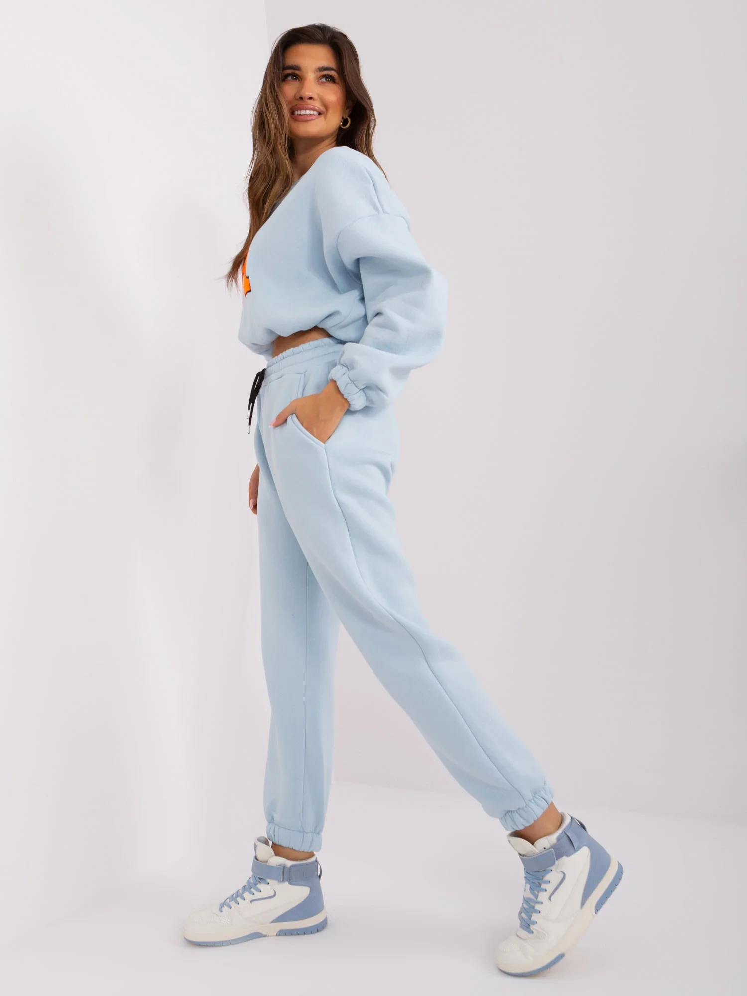 Jasnoniebiesko-fluo pomarańczowy damski komplet dresowy .