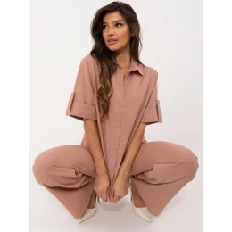 Wymiary kompletu w rozmiarze S/M mierzone na płasko: szerokość koszuli pod pachami - 58 cm, długość rękawa - 34 cm, długość koszuli -73 cm, szerokość spodni w pasie - 34 cm, długość spodni - 108 cm.