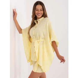 Wymiary koszuli w rozmiarze S/M. mierzone na płasko: szerokość pod pachami - 64 cm, szerokość w biodrach - 99 cm, długość rękawa - 44 cm, długość całkowita - 69 cm.